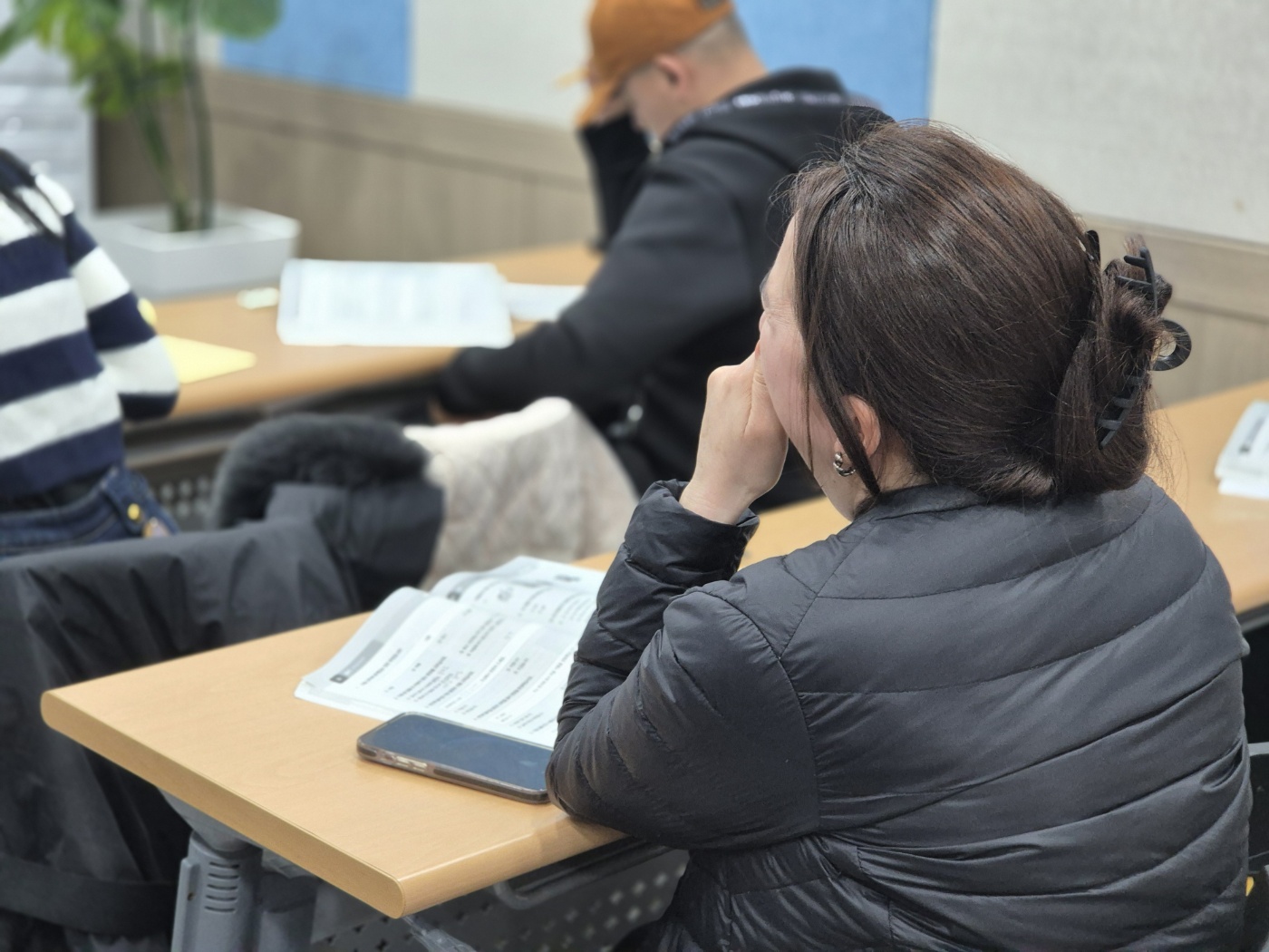 수업이 시작되니, 피곤한지 연신 하품을 하는 외국인근로자도 있습니다. 주경야독! 정말 힘들지요.