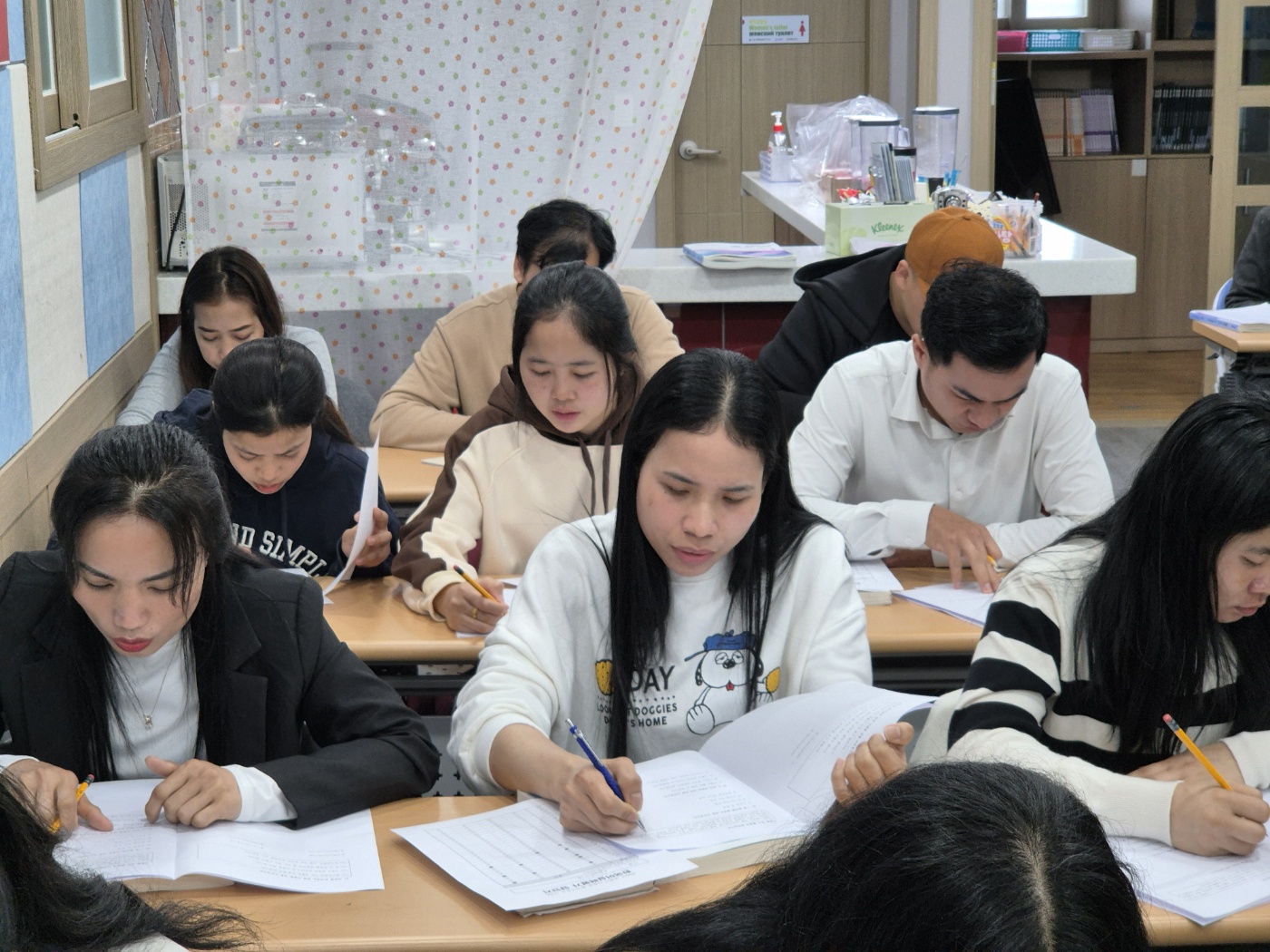 시험를 볼때, 문제가 어려우면 우스갯소리로, 까만 것은 글자고, 하얀 것은 종이다...그러잖아요. 고민을 상당히 하는 외국인근로자가 있는 반면, 시험지를 받자마자 착착 풀어가는 외국인근로자도 있습니다.