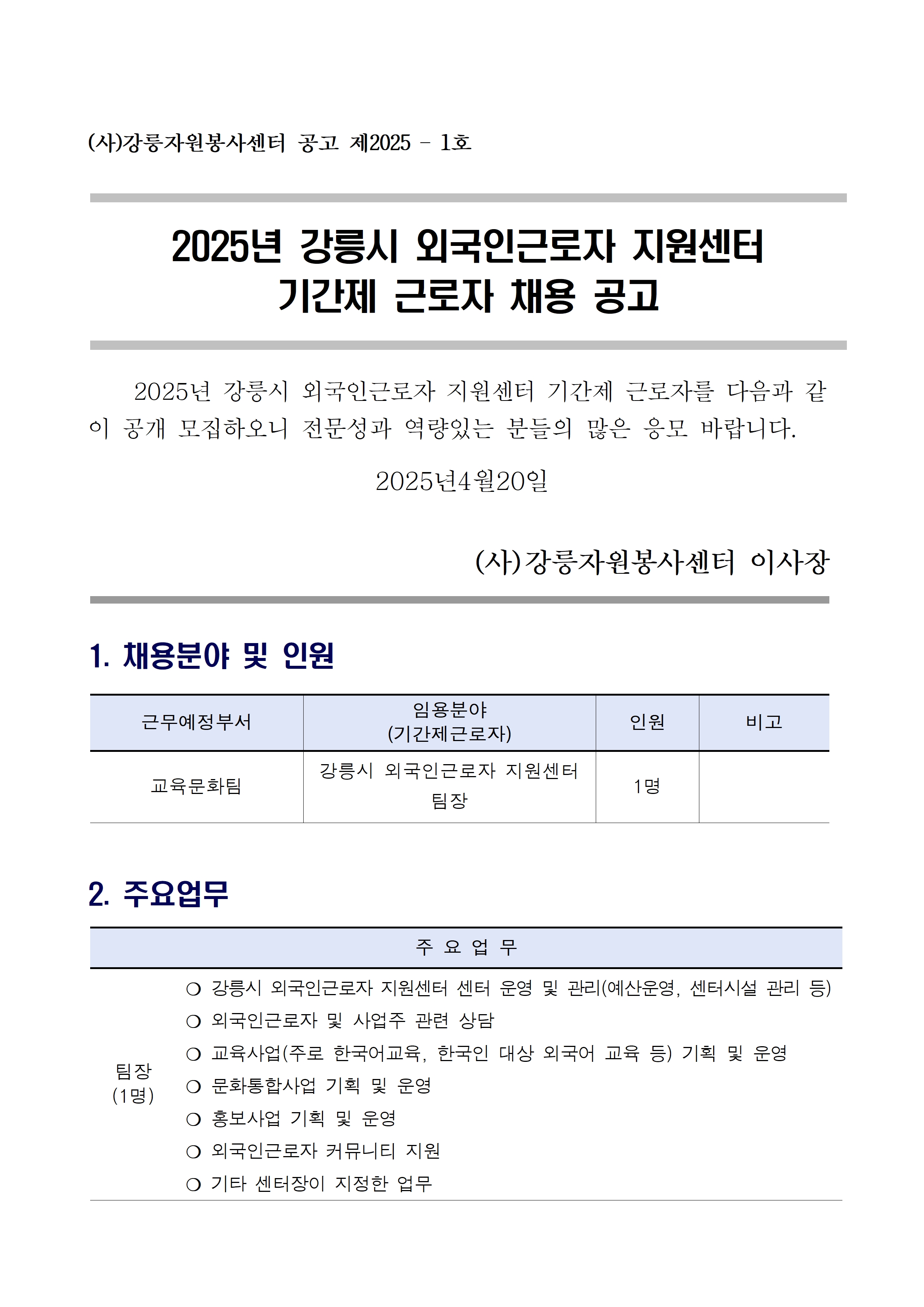 2025년 강릉시 외국인근로자 지원센터 기간제근로자 채용 공고(안).hwp