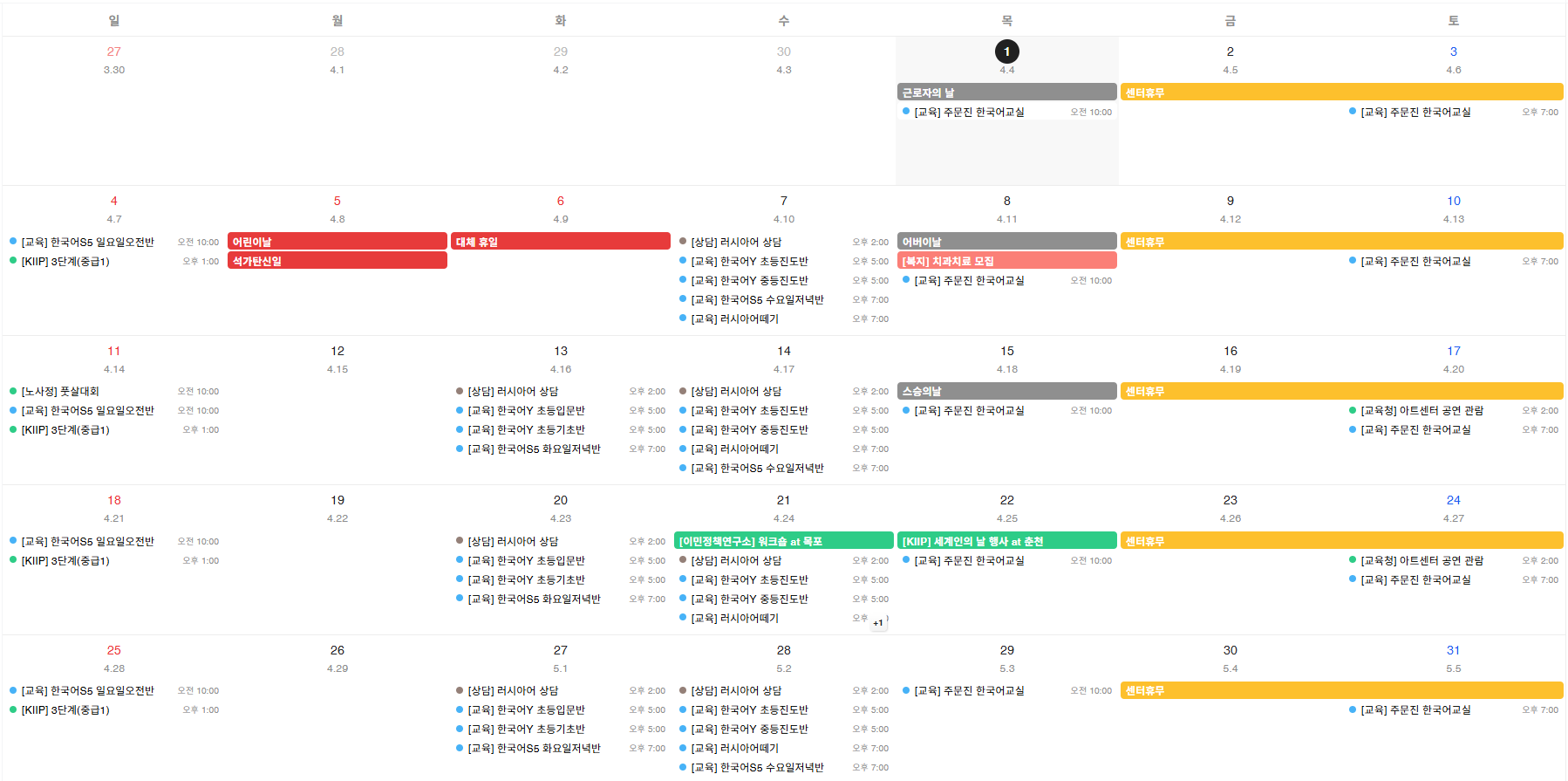 ※ 센터 사정에 의해 일정은 변경될 수 있습니다.
