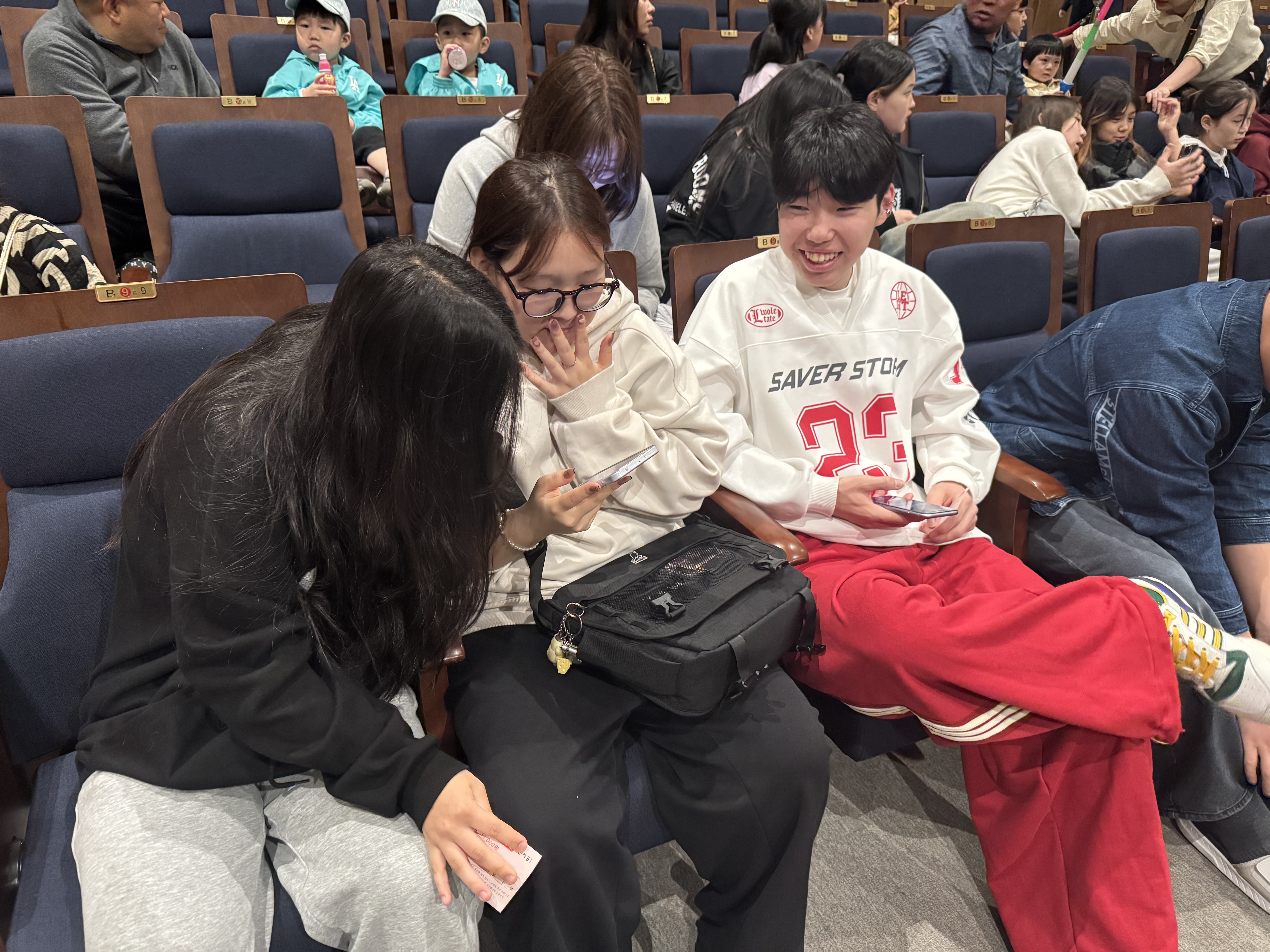 중학생 언니 오빠들에게는 조금 시시해 보일 수도 있었겠지만 공연에 푹 빠져 돼지친구들과 하이파이브도 하며 흥미롭게 관람하는 모습을 보이는 청소년들도 있었습니다.