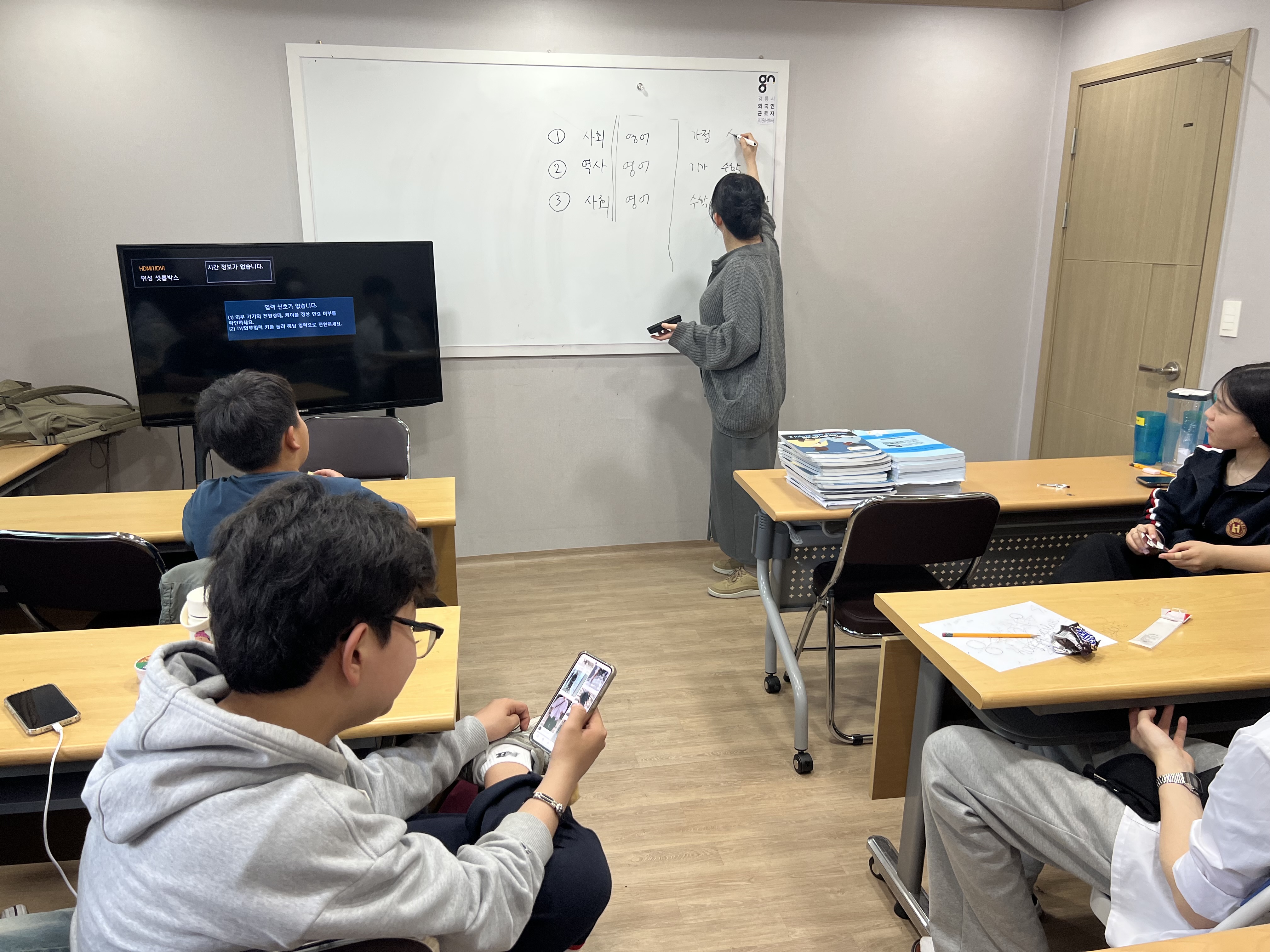 한국어수업은 중학교 시험 관련 문제와 공부를 하는 조금 어려운 시간이였어요.