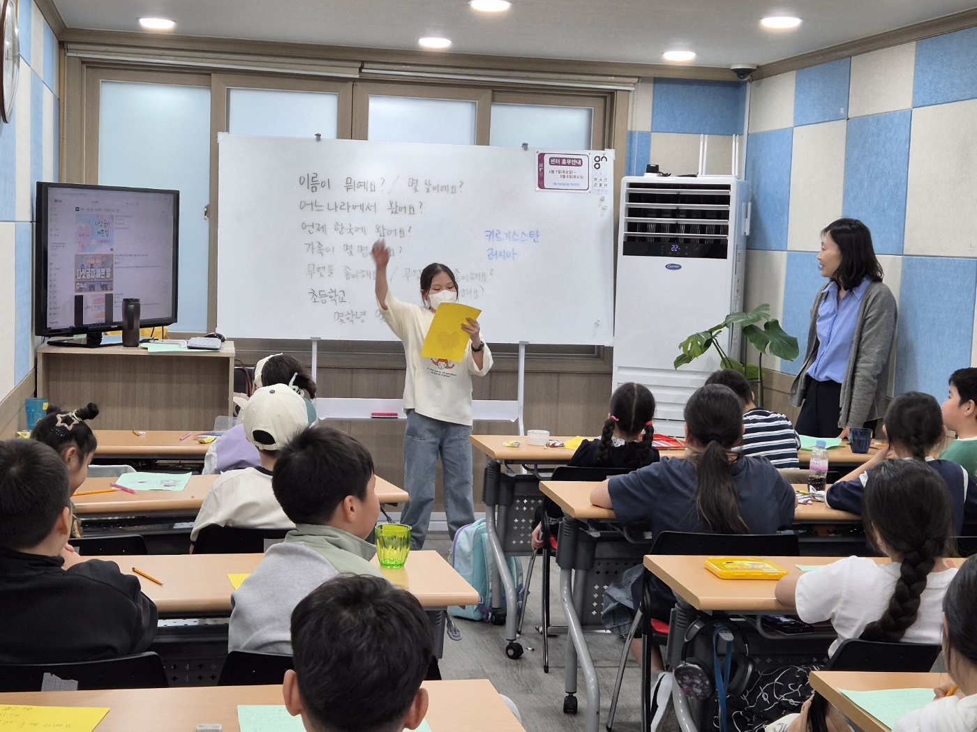 한국어수업은 중학교 시험 관련 문제와 공부를 하는 조금 어려운 시간이였어요.