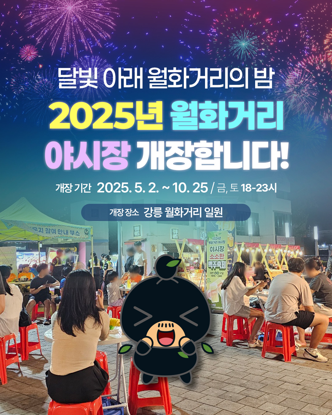 강릉 월화거리에서 금요일과 토요일밤에 마켓을 운영합니다.