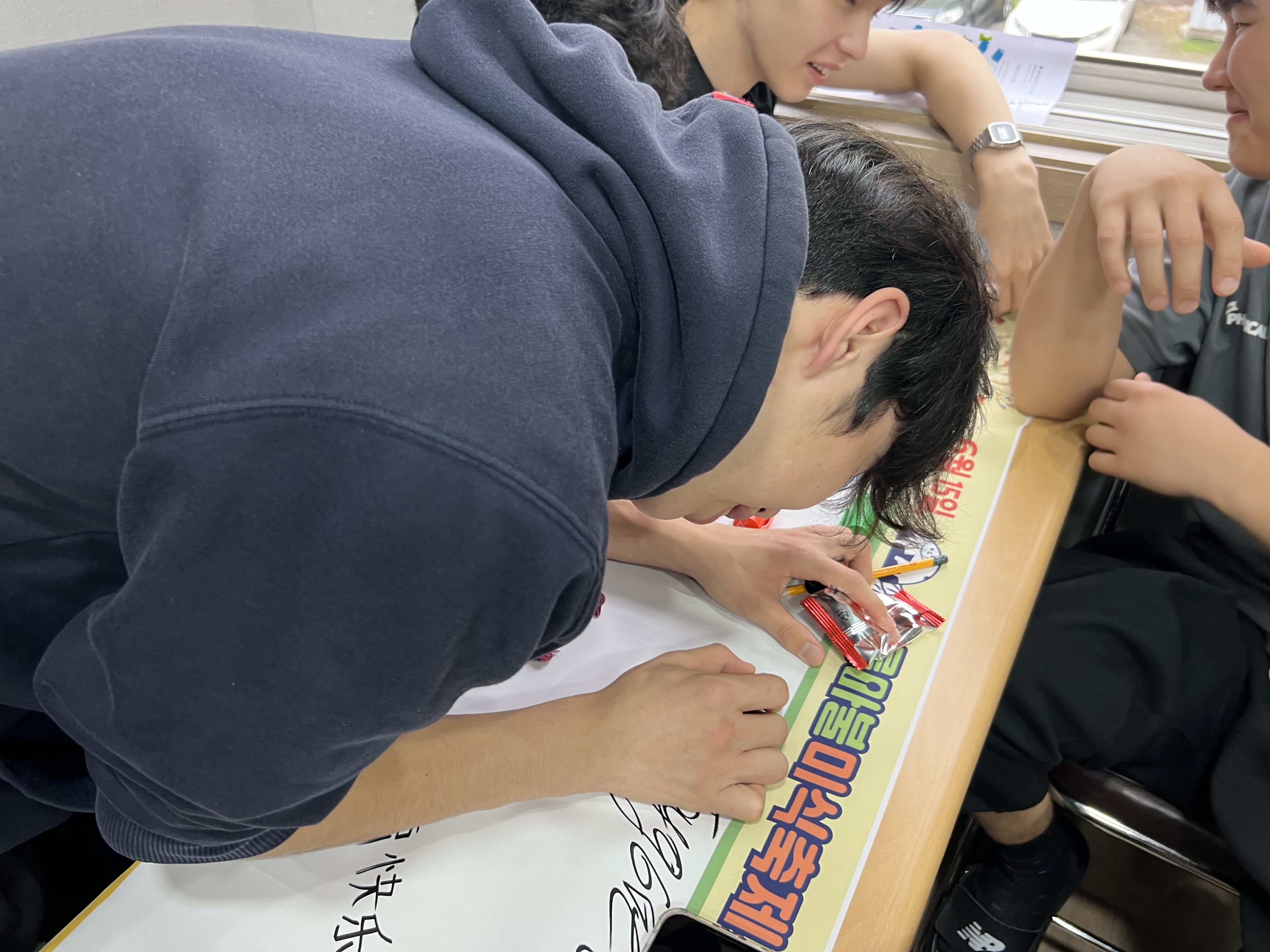 수업 쉬는 시간에 단오길놀이 참여를 위한 현수막 작업을 하기도 했답니다.