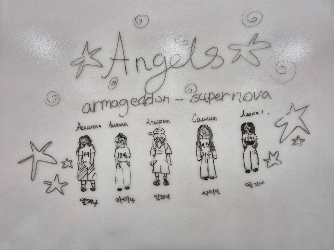 아마도, 저 낙서는 지난 주 있었던, 강릉마불미식축제 장기자랑에서 우승을 했던 급조된 팀 angels의 자화상인 듯 합니다.
