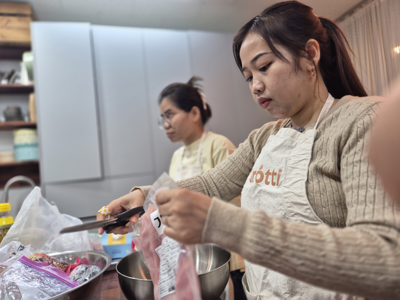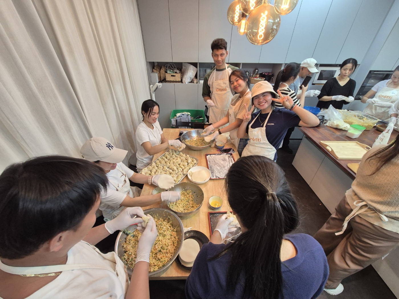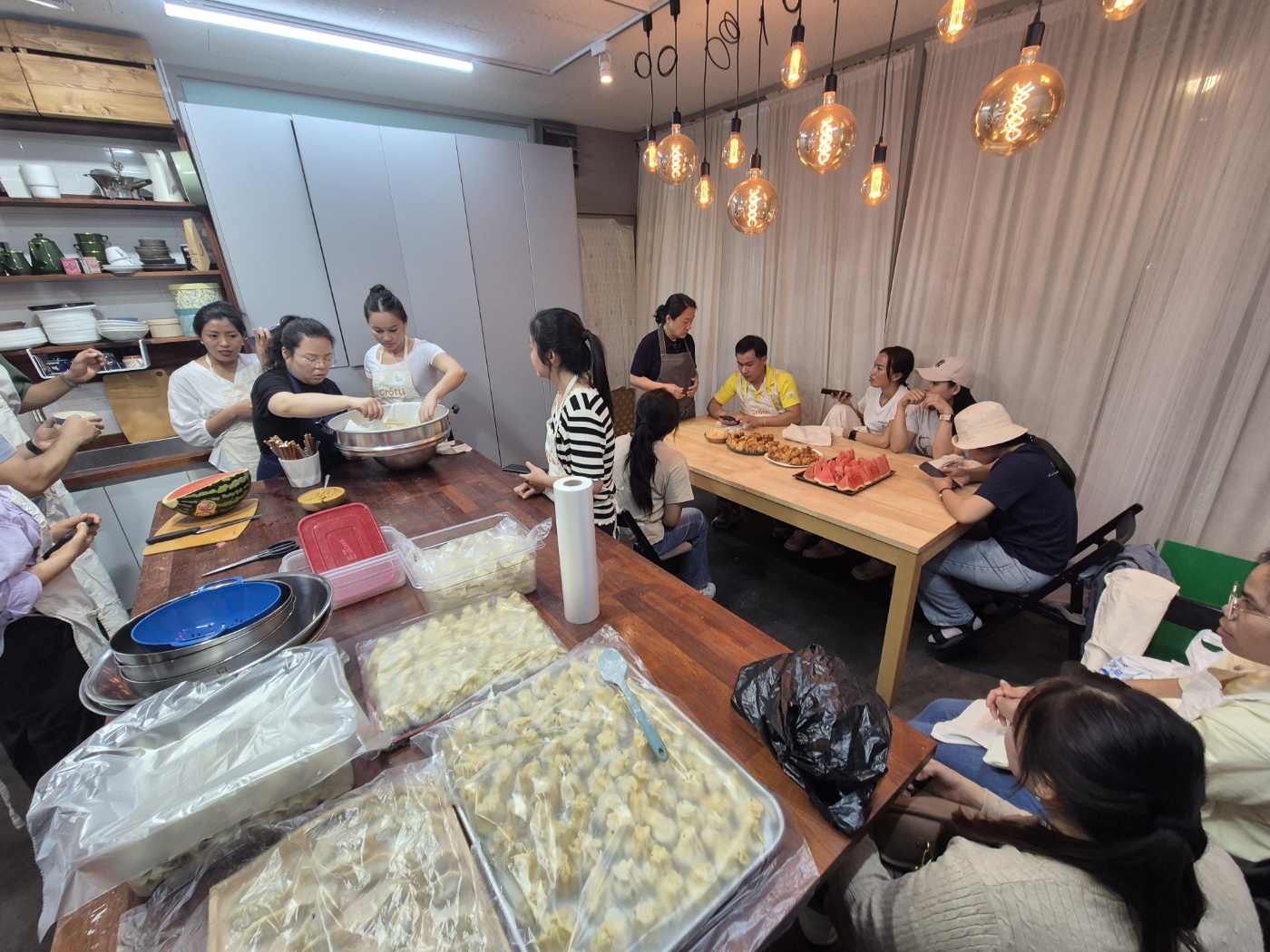 축제 전날 일을 마치고 함께 모여 만두를 빚었습니다.