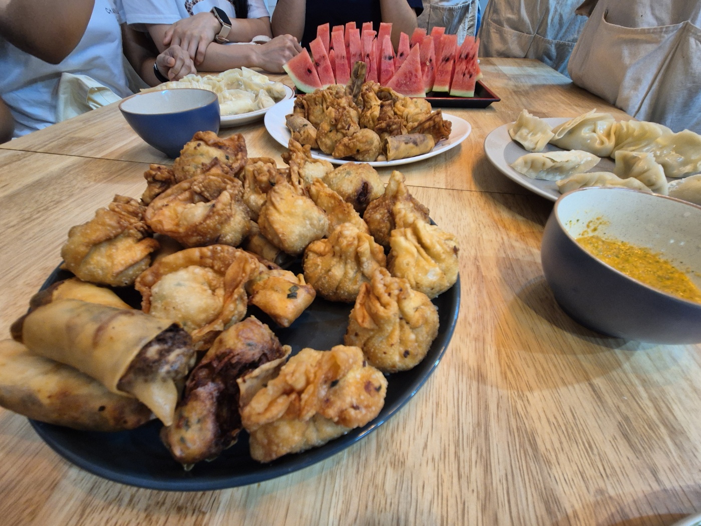축제에 방문하는 사람에게 캄보디아, 네팔, 인도네시아, 알제리의 만두를 대접하기로 했습니다.