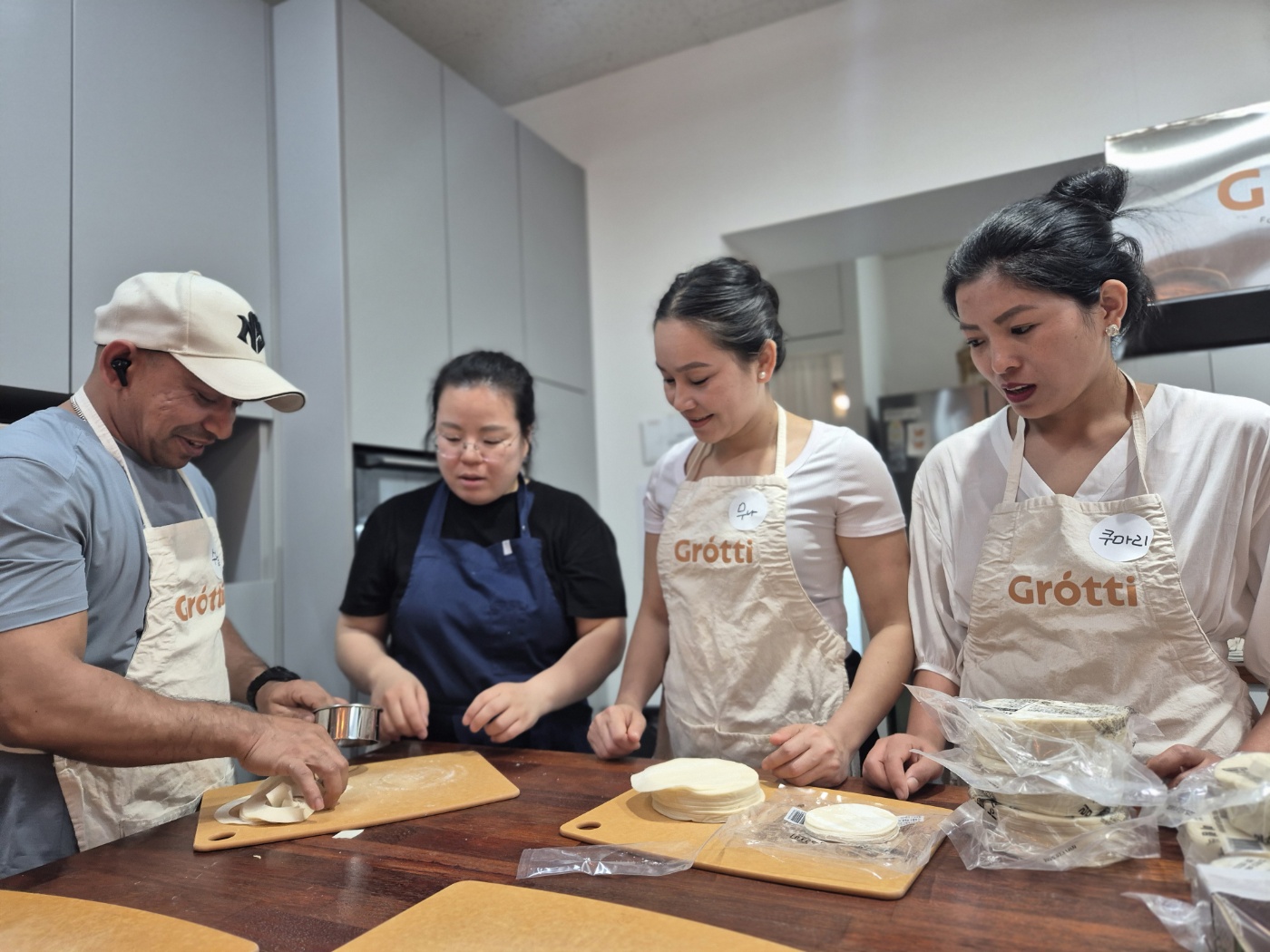 그로티에서 준비한 재료와 각자 가지고 있던 비법 양념을 가지고 와 대결하라는 것도 아닌데 경쟁경쟁, 아주 진지하게 만두를 빚었습니다~각 나라별로 부족한 일손을 거들어가면서 했지만, 200개씩 만드는 것은 쉽지 않았습니다. 게다가 다음 날까지 보관하는 것도 문제였구요.