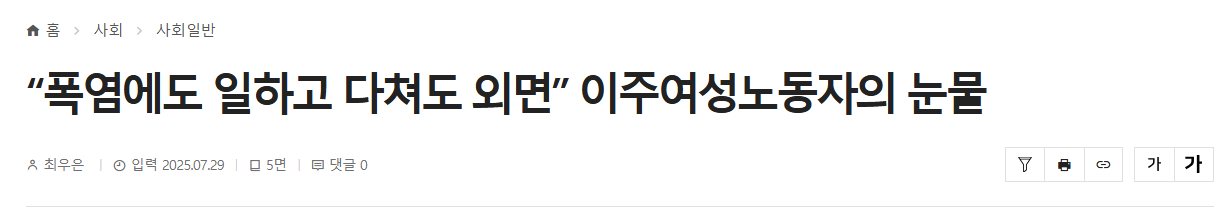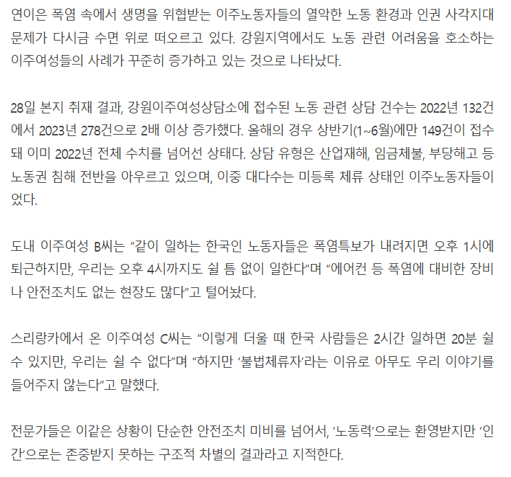 “폭염에도 일하고 다쳐도 외면” 이주여성노동자의 눈물