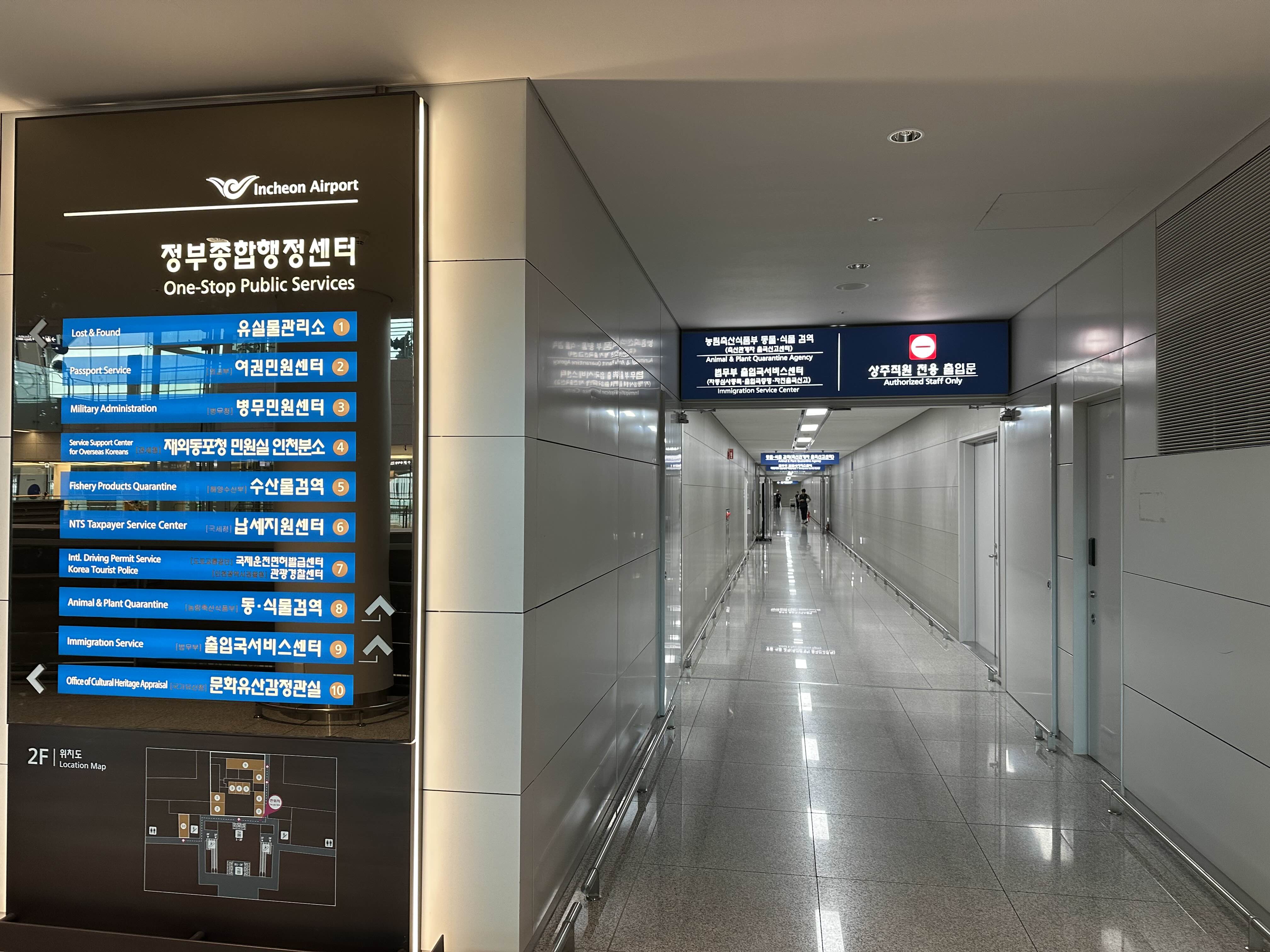 법무부 출입국서비스센터는 터미널 2층에 위치하고 있습니다.