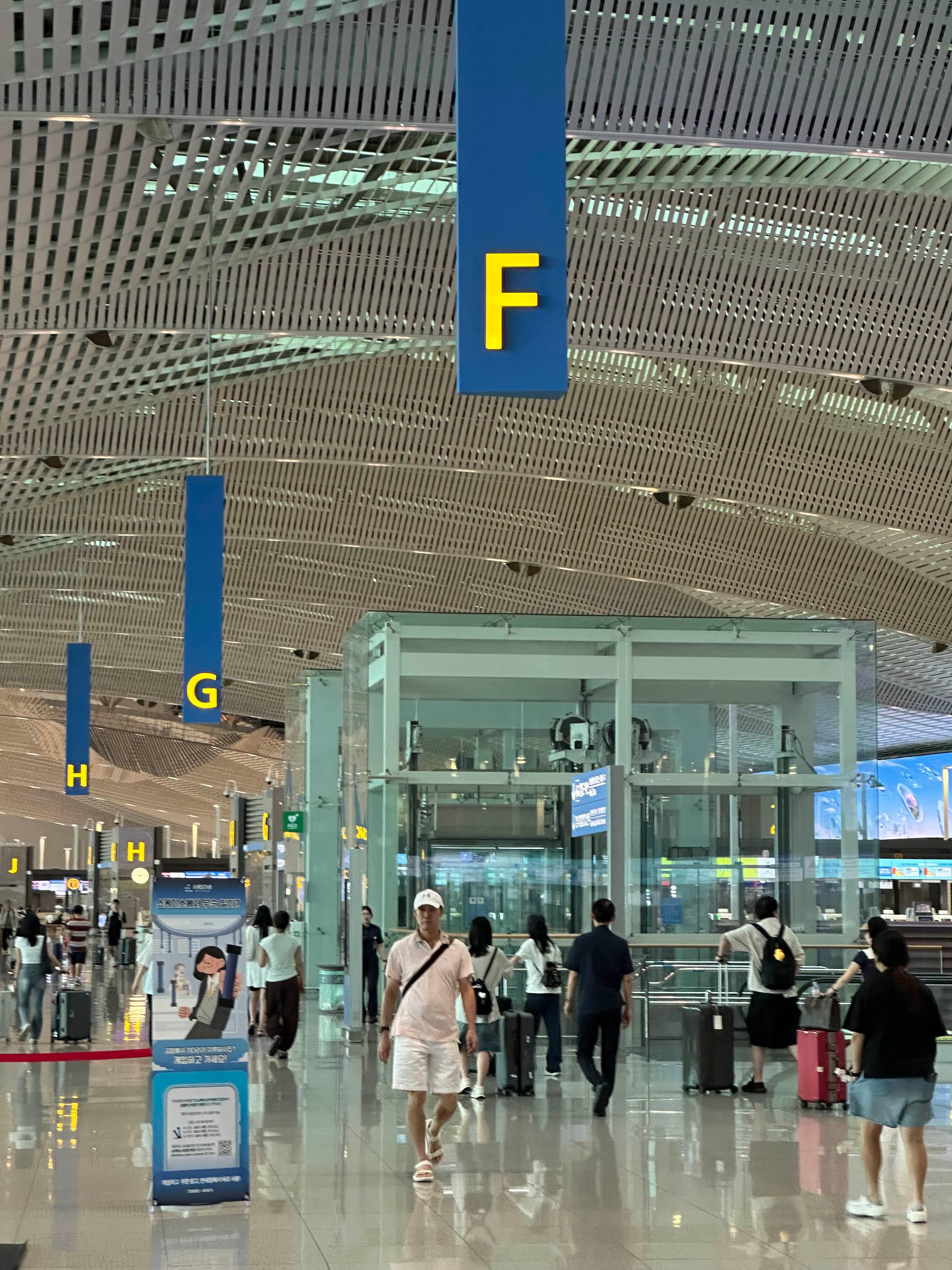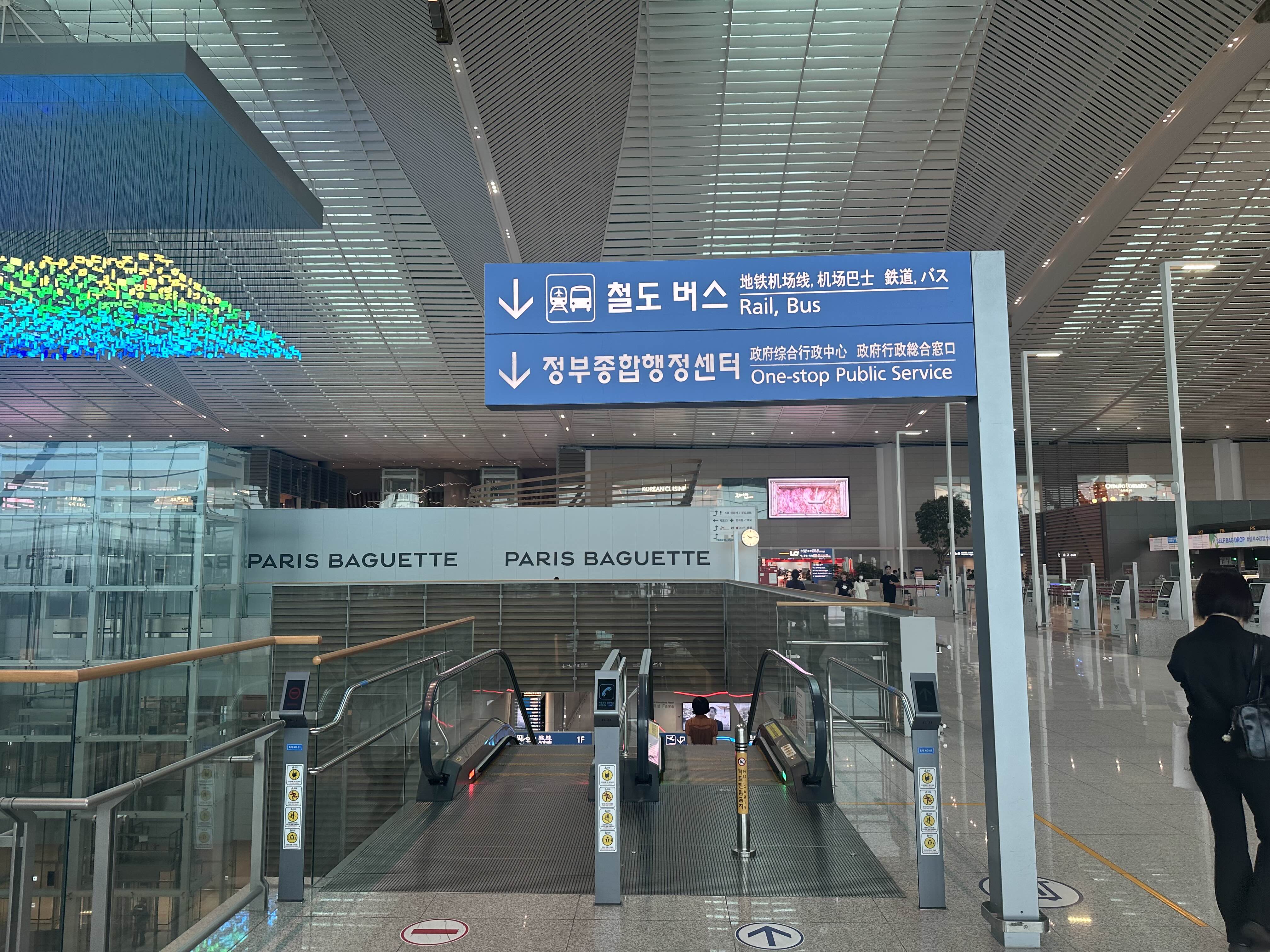 버스를 타고 갈 경우 보통은 3층 출국장에서 하차합니다. 그러면 F열 앞 엘리베이터나 에스컬레이터를 이용해 2층으로 내려 갑니다.