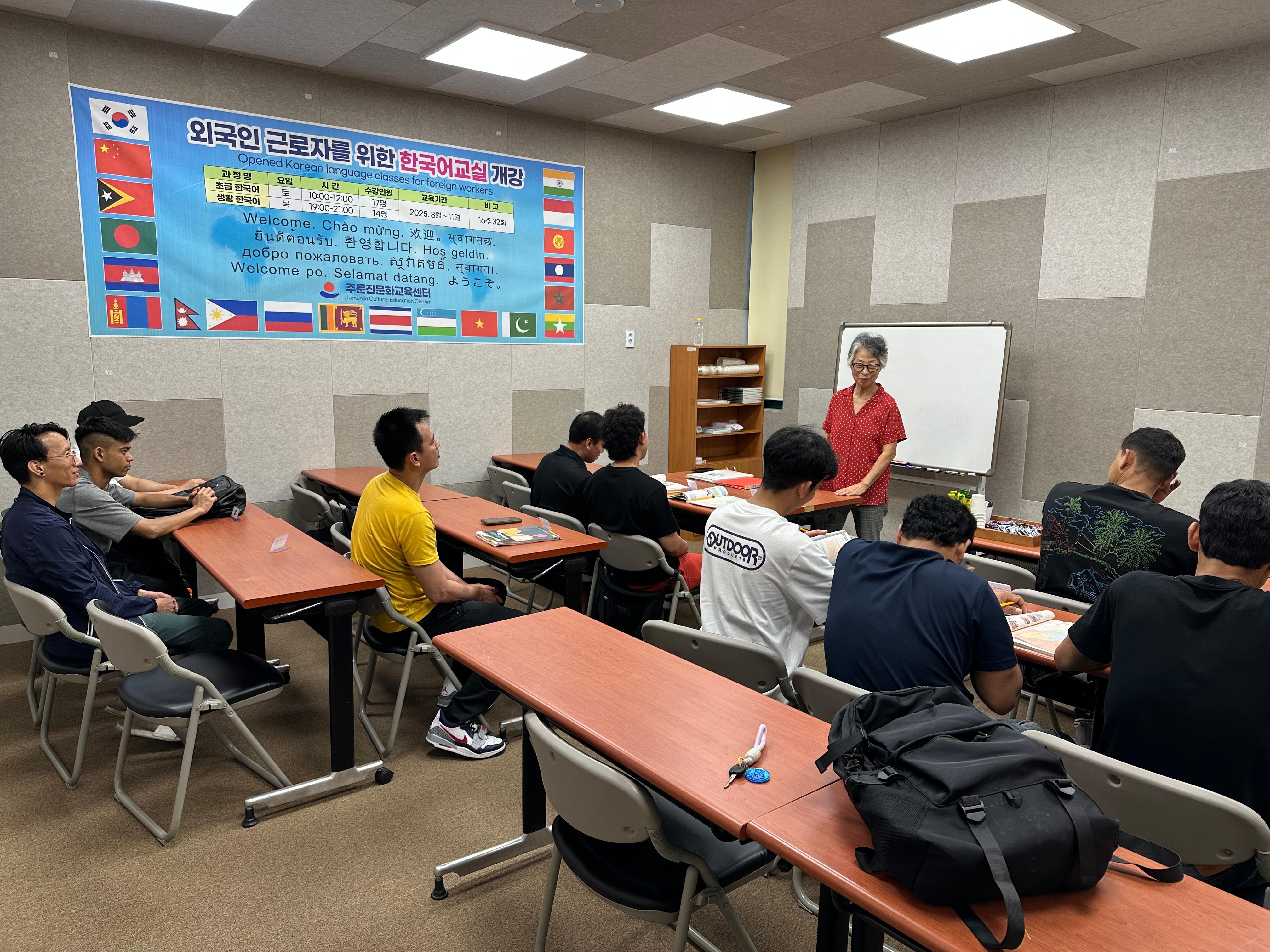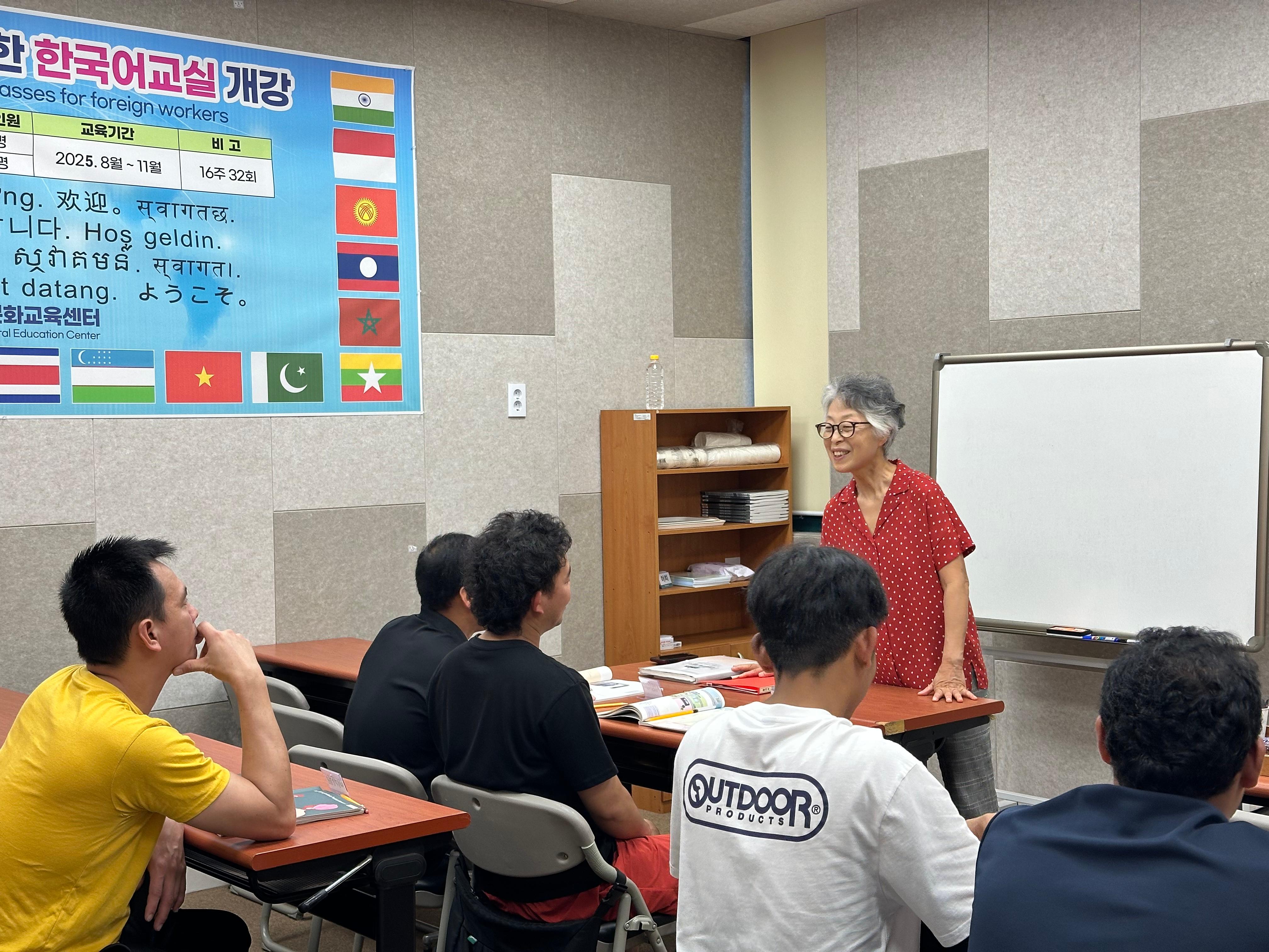 센터와 멀어서 한국어교실 수업을 들을 수 없는 외국인근로자를 위해 찾아가는 한국어교실을 운영하고 있습니다.
