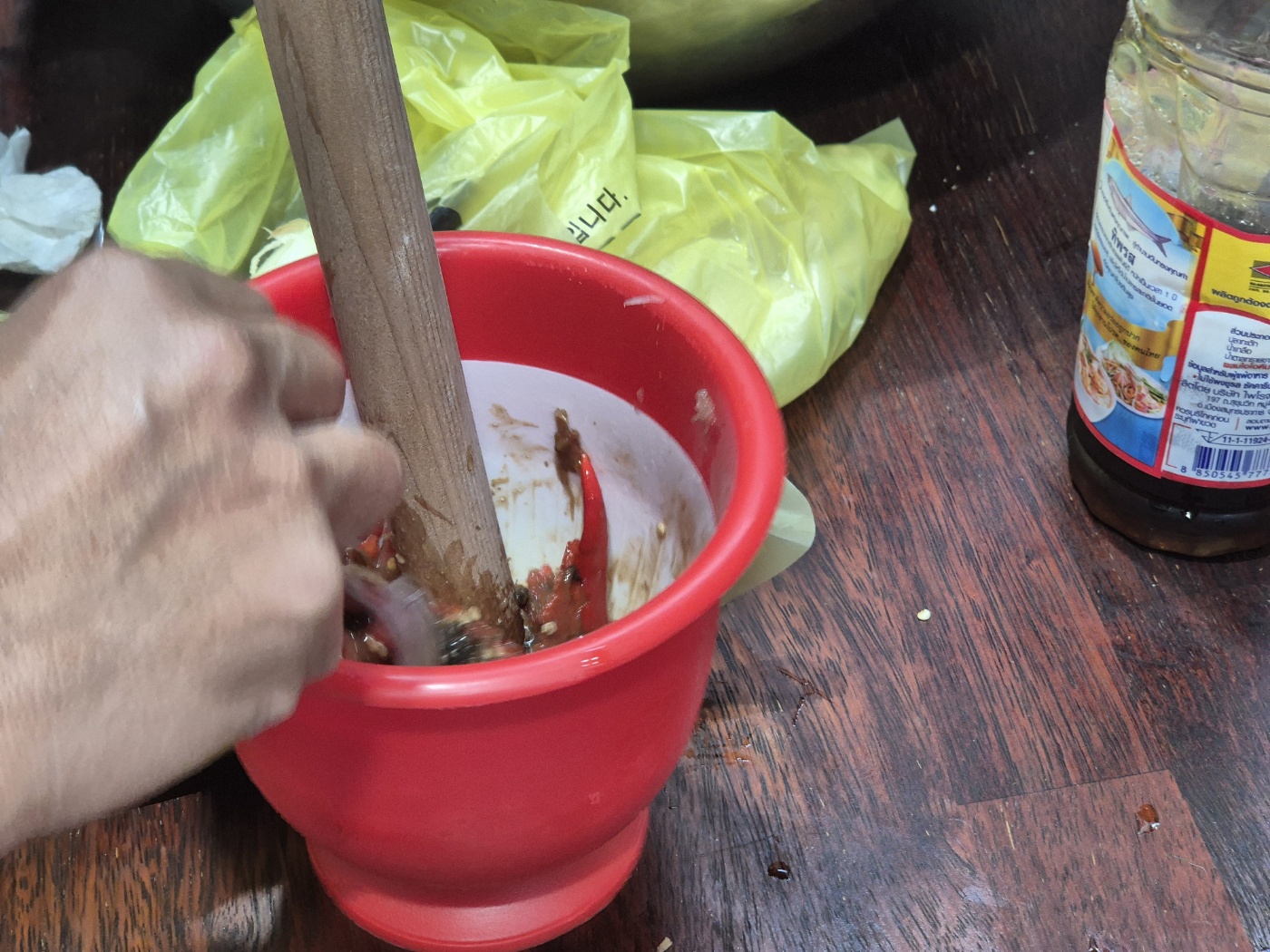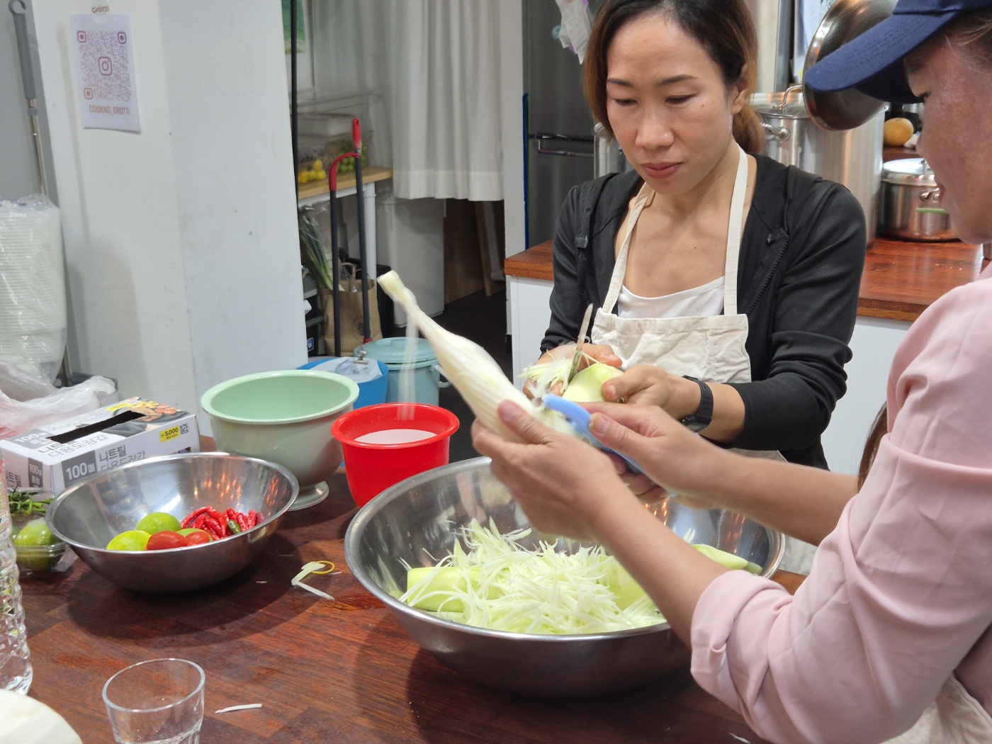 한국 김치와 라오스에서 김치처럼 먹는다는 땀막홍이 잘 어울릴까 싶었습니다. 얼른 김치를 담그고, 파파야와 액젓, 과일 등을 넣어 땀막홍을 만들었습니다.