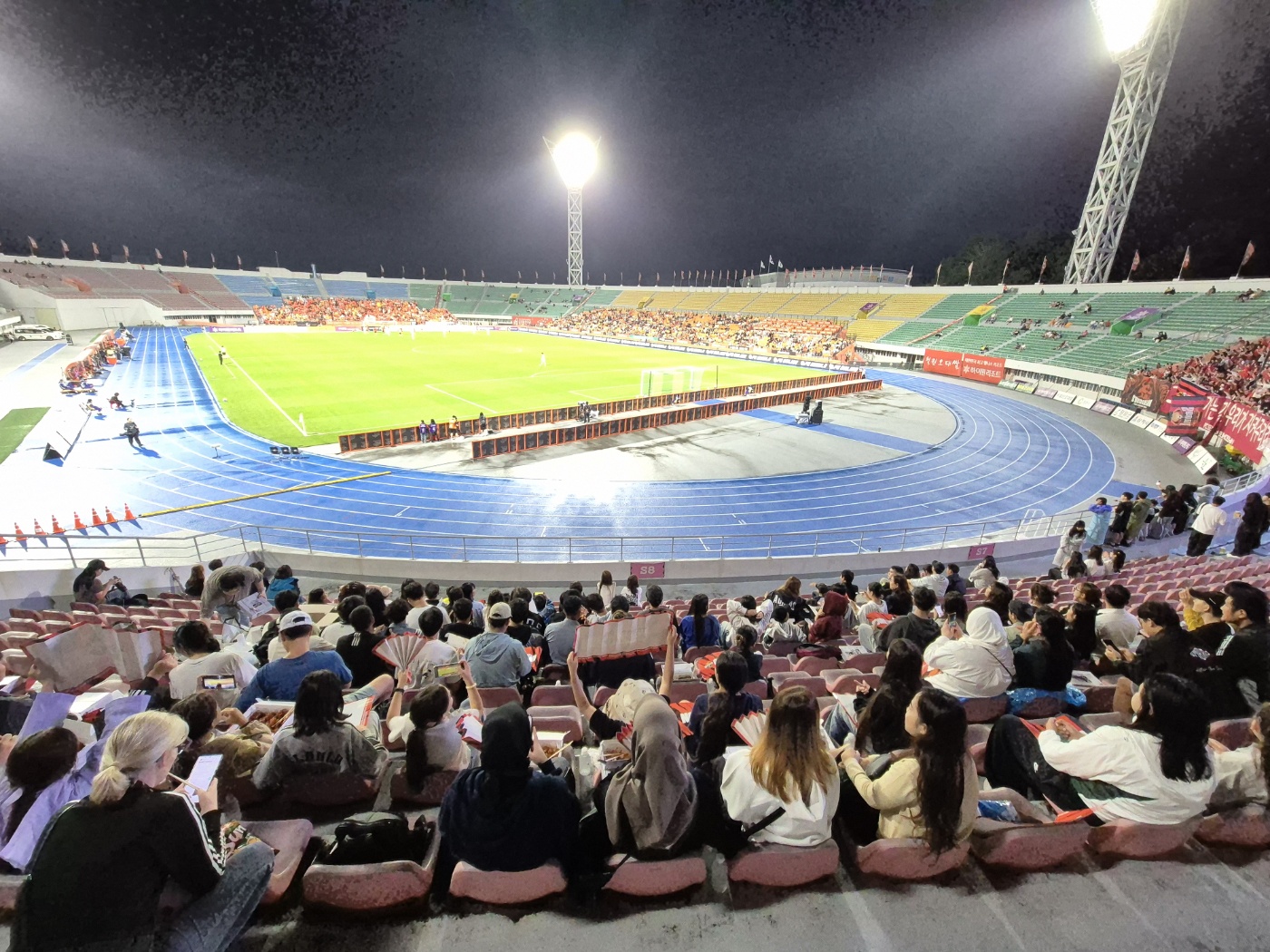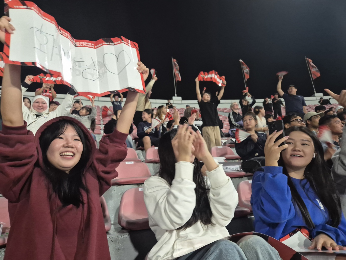 우리 외국인근로자가 예약한 자리가 원정팀인 서울FC쪽에 가깝다보니, 응원은 자연스럽게 서울FC박자에 맞춰하게 되었습니다. 그래도 신나는 응원가에 강원FC가 이기길 열심히 응원했습니다.