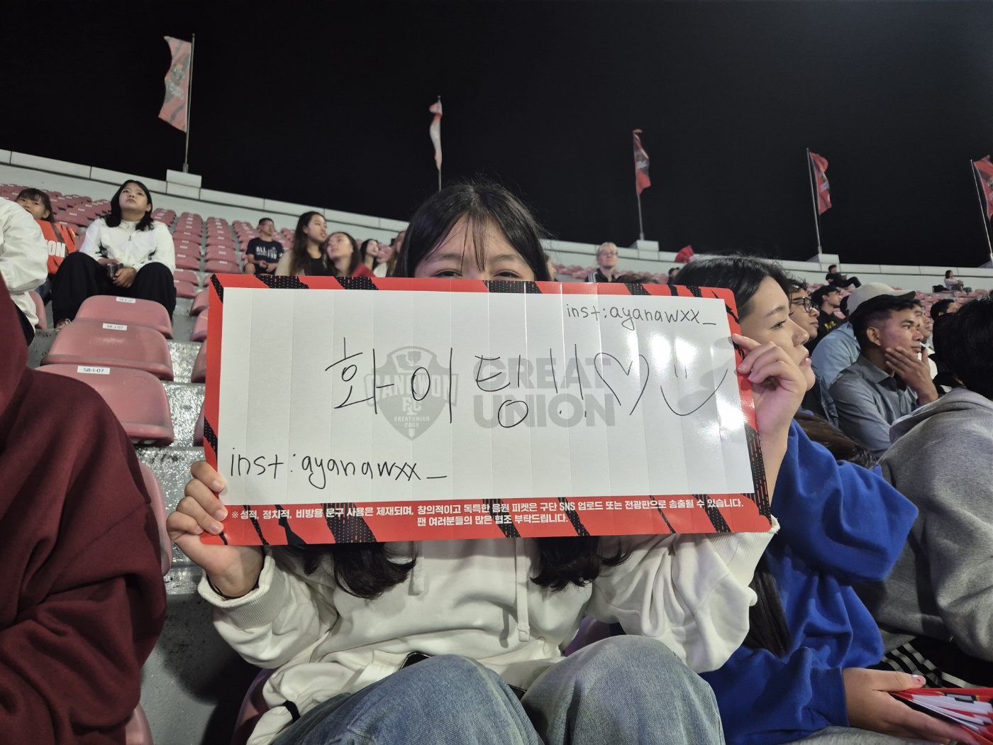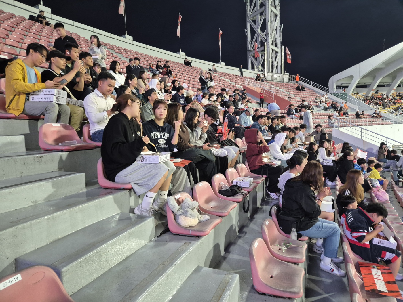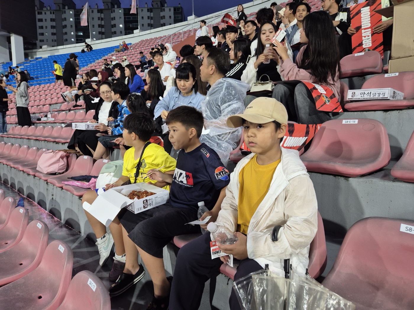 우리 외국인근로자가 예약한 자리가 원정팀인 서울FC쪽에 가깝다보니, 응원은 자연스럽게 서울FC박자에 맞춰하게 되었습니다. 그래도 신나는 응원가에 강원FC가 이기길 열심히 응원했습니다.