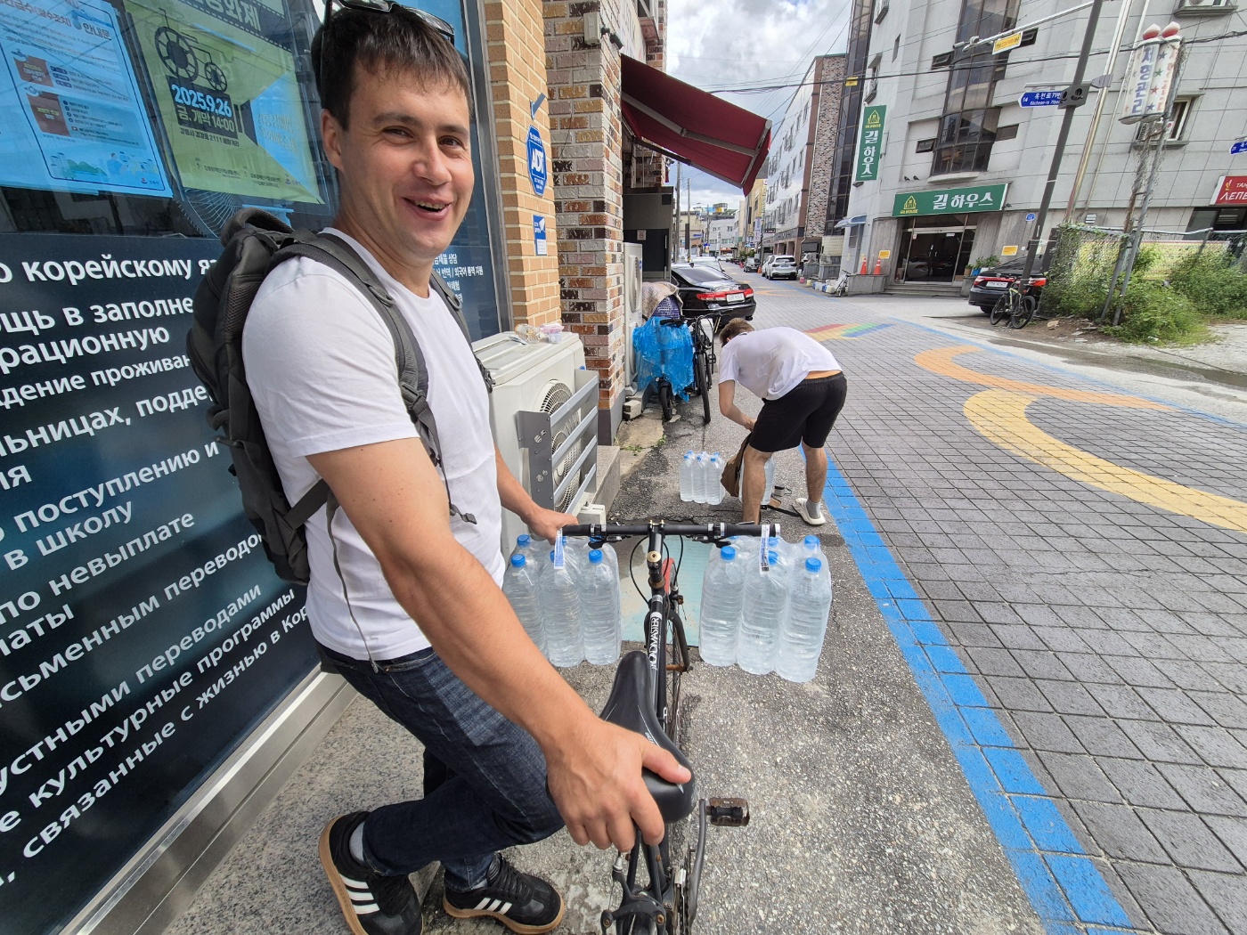 받은 물이 제법 무겁워서 차로, 자전거로, 친구의 도움도 받으며 집으로 가지고 갔습니다.
