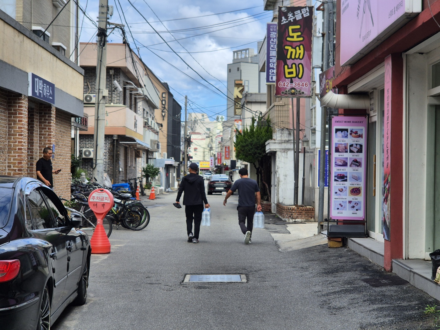 아직 생수는 센터에서 배포하고 있습니다. 여권이나 외국인등록증이 있으면 받아갈 수 있습니다.