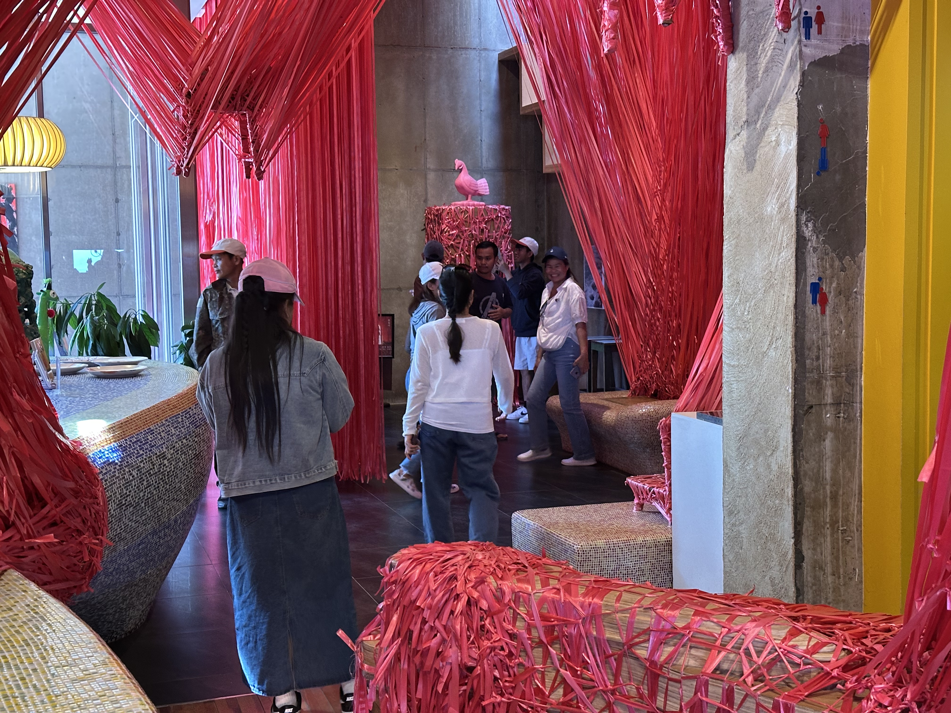 들어서자 마자 MZ아니랄까봐 사진찍느랴 정신이 없습니다. 찍고 찍어주고 사진스팟에서는 줄서서 찍고...셀피도 찍고...가족한테 자랑하는 영상통화도 하고...나름대로 갤러리를 즐겼습니다. 제일 인기가 있었던 곳은 바다가 저 멀리 보이는, 노랑우산이 인상적이었던 하늘계단이었습니다. 단체사진도 찍고 개인 사진도 찍고, 누군가에게 보여주고...