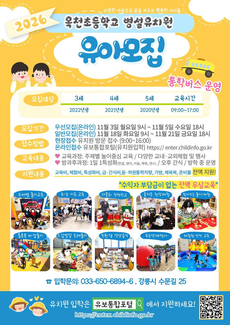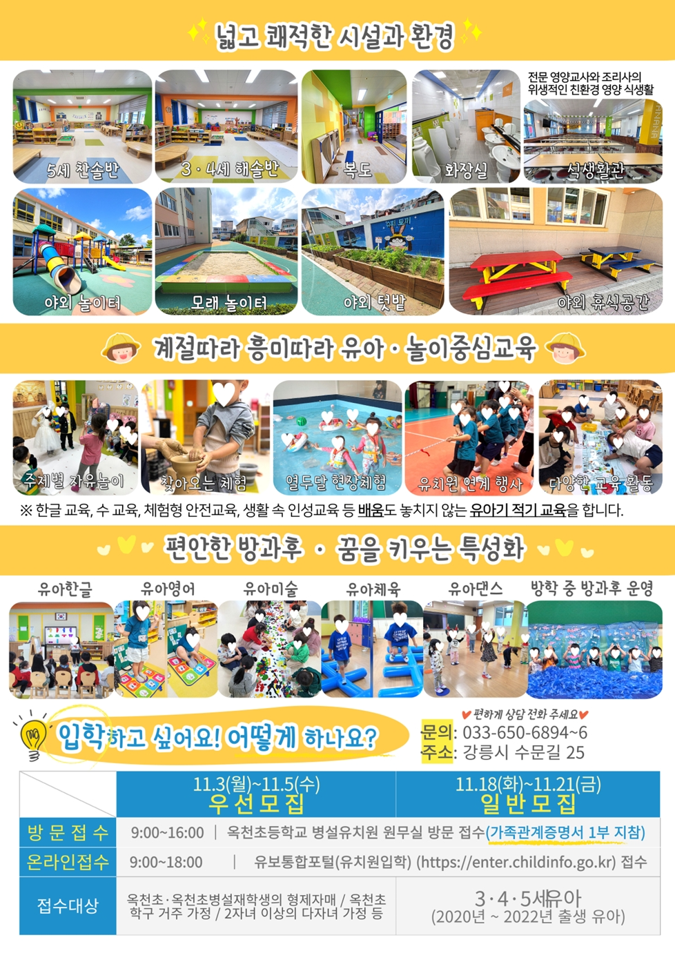 Okcheon Elementary School Attached Kindergarten is now accepting applications for the 2026 school year.