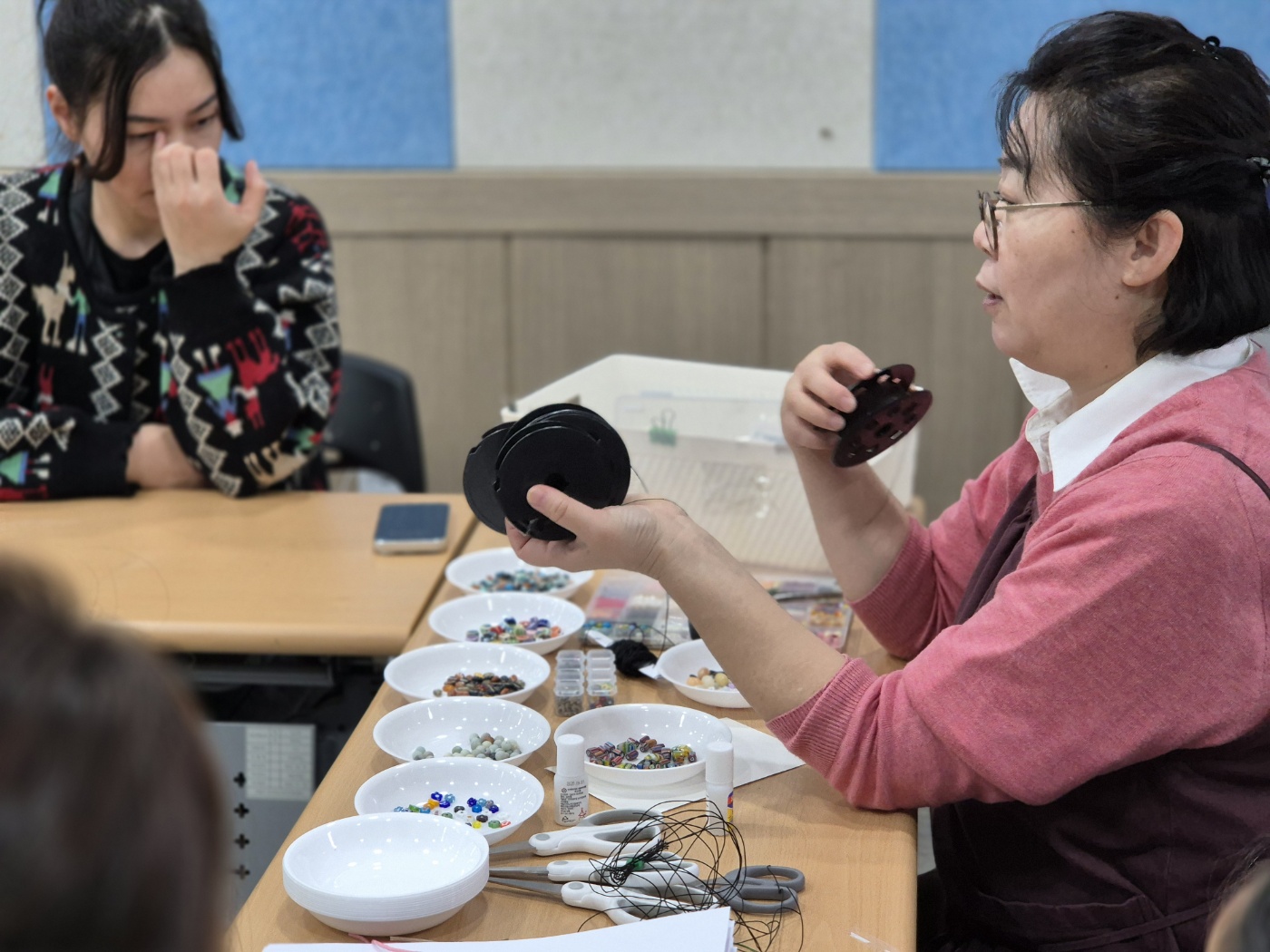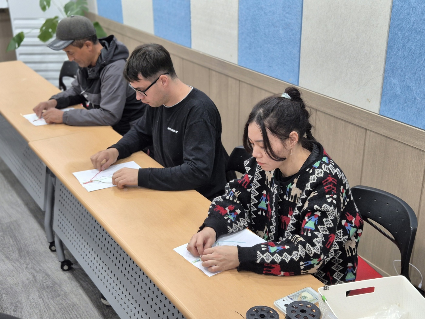 게다가, 공예는 여성의 영역이라는 고정관념을 깨고 손이 두툼한 남성도 제법 참여했습니다. 큰 손으로 아기자기 한 비즈를 꿰는 것이 어려웠지만, 투덜 대지도 않고 주변의 도움을 받아가며 팔찌를 완성해 갔습니다.