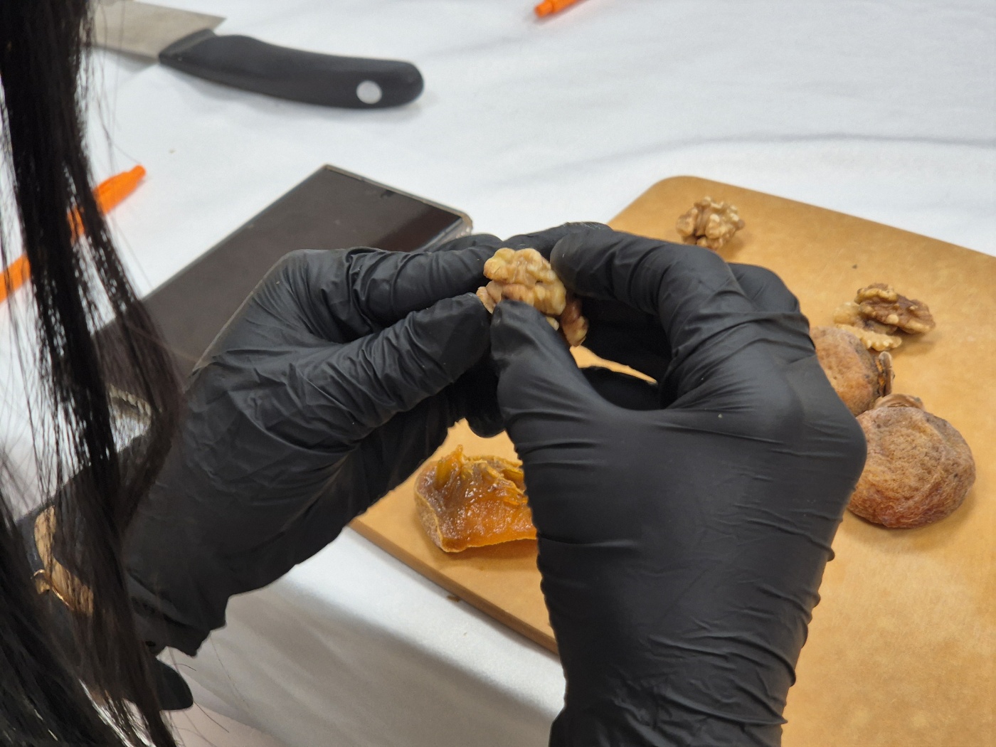 잘 마른 호두 한짱을 둥근 모양으로 만들고, 곶감을 넓게 펼쳐서 둘둘 만 다음 먹기 좋은 크기로 짤랐습니다. 보기에는 쉬워보였는데 만드는데 어려웠나 봅니다. 모양이 다들 가지 각색입니다.