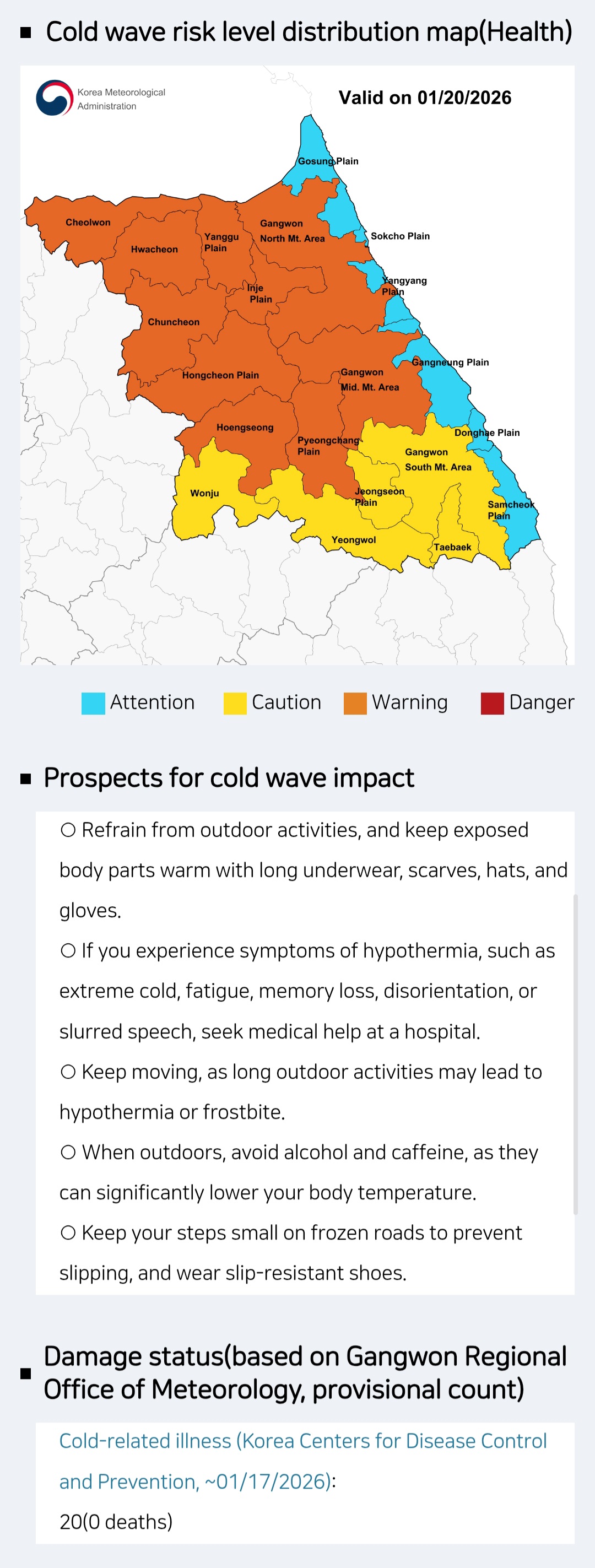 * 한파 지속에 따른 수도관 동파에 유의하시고, 실내에 머무르시고 적정 실내온도(18~20도)를 유지해주시기 바랍니다.