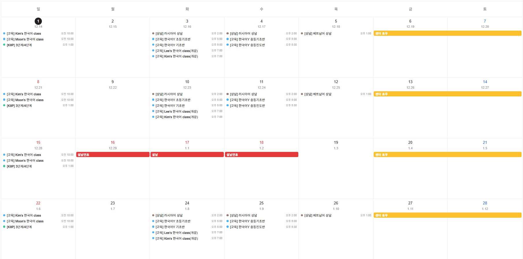 ※ 센터 사정에 의해 일정은 변경될 수 있습니다.