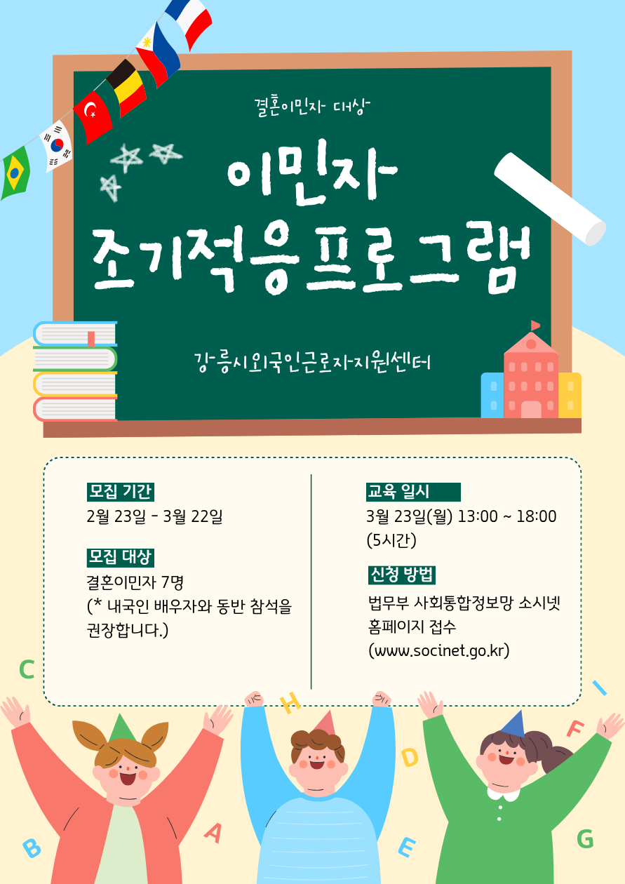 25년 7월에 법무부로부터 이민자 조기적응프로그램 일반운영기관으로 지정받았습니다.