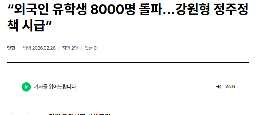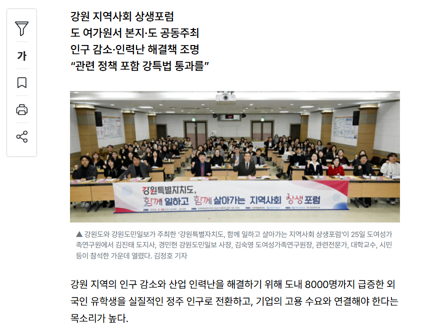 강원 지역의 인구 감소와 산업 인력난을 해결하기 위해 도내 8000명까지 급증한 외국인 유학생을 실질적인 정주 인구로 전환하고, 기업의 고용 수요와 연결해야 한다