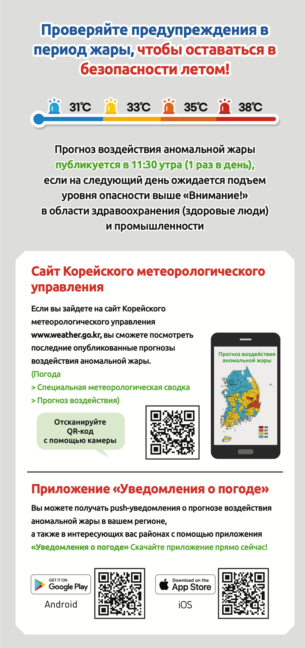 폭염 영향예보 산업분야 알아보기를 러시아어로 제작하였습니다.