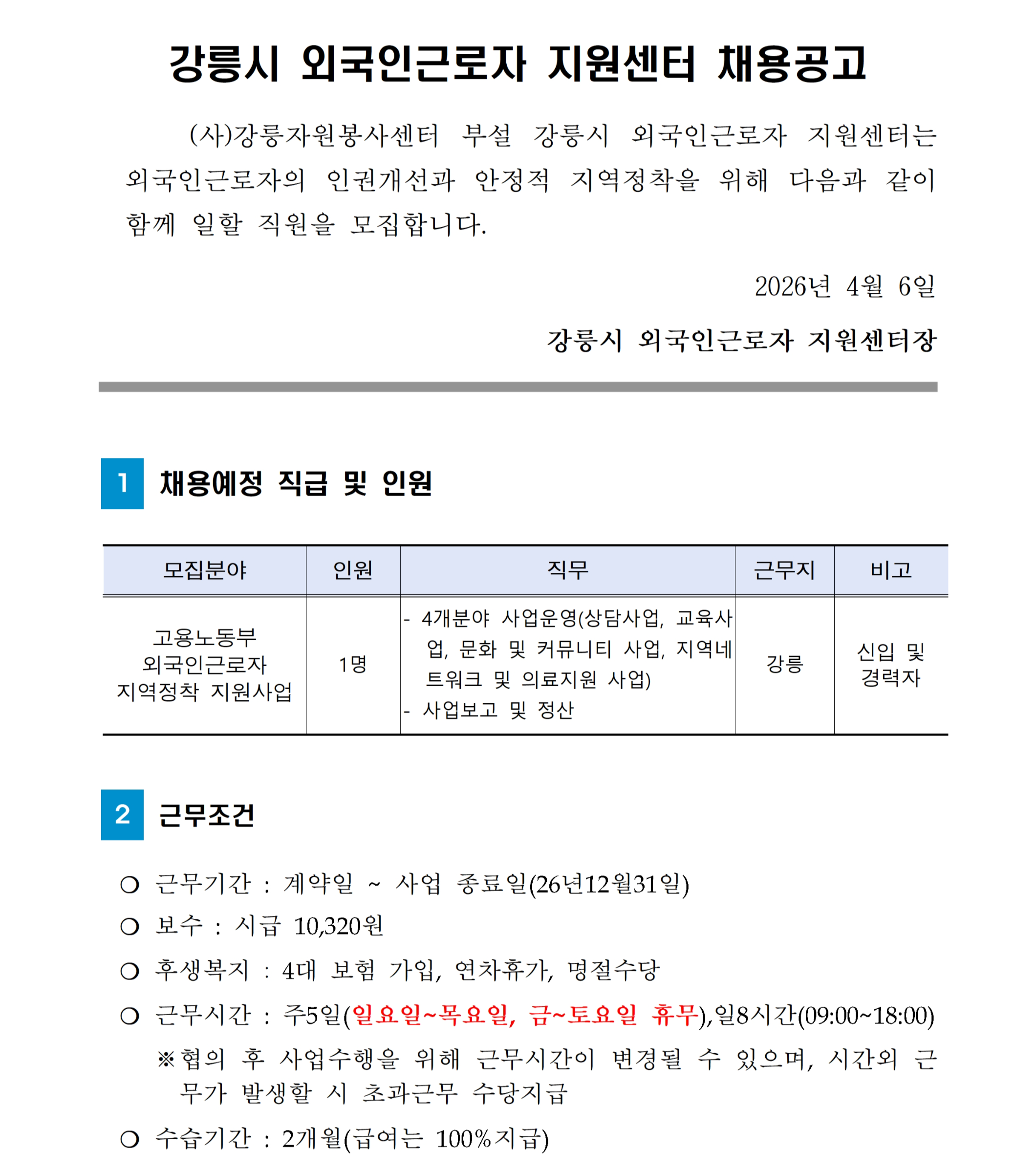by 강릉시 외국인근로자 지원센터 2026. 4. 6.