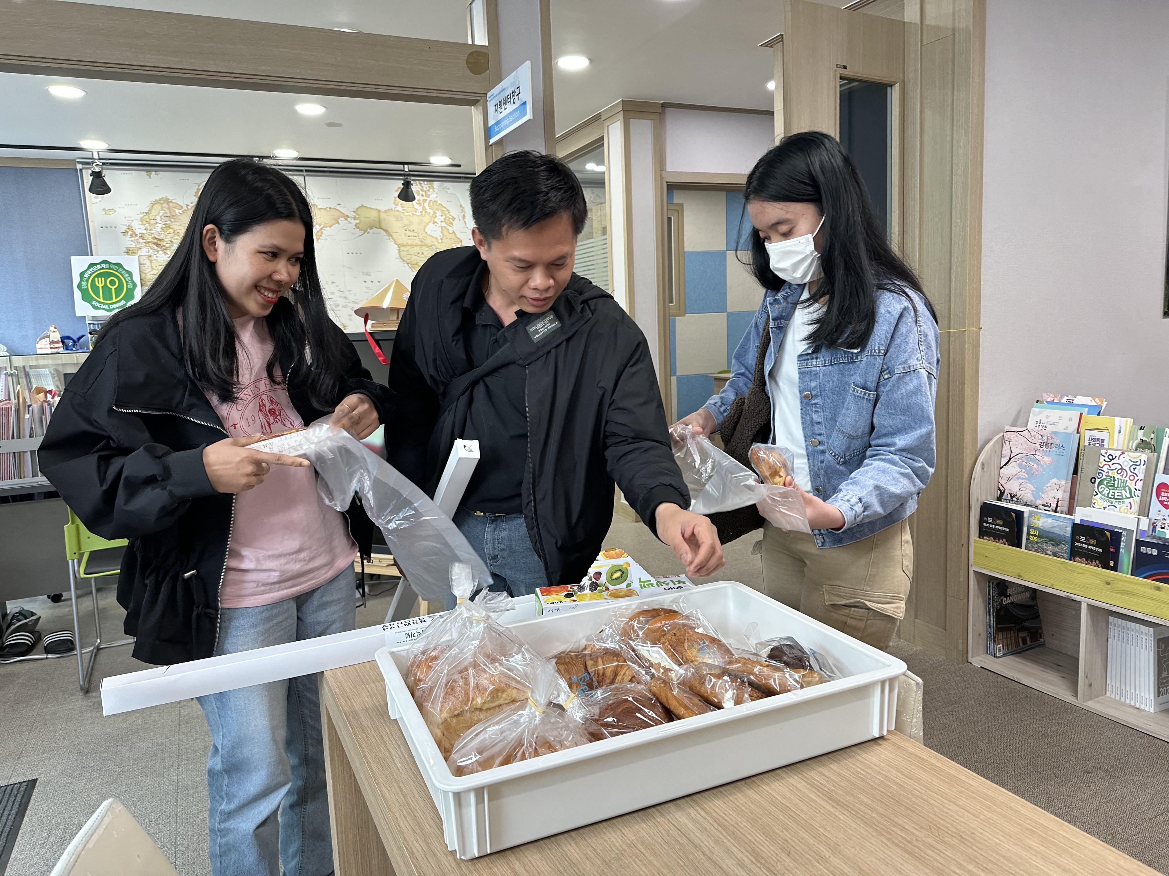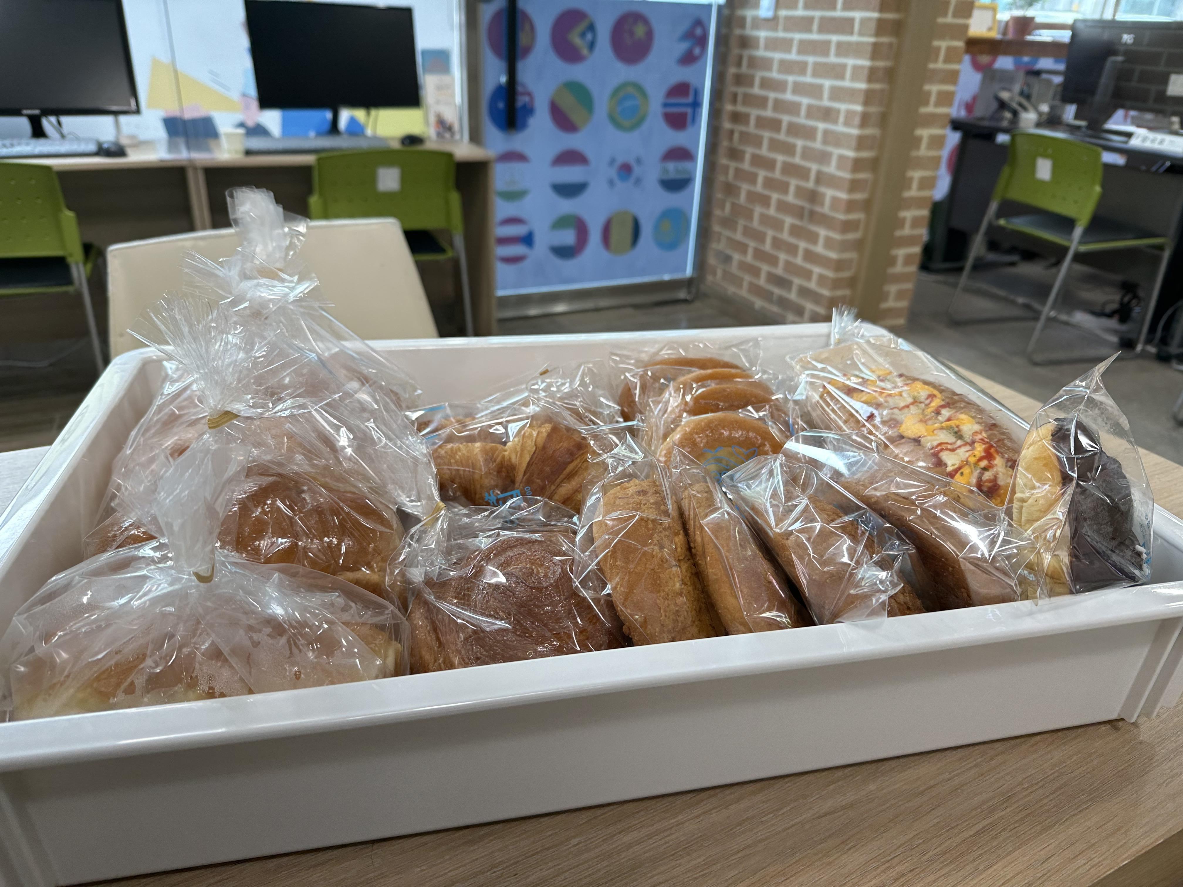 오늘은 일요일 오전 수업을 마친 외국인근로자가 빵을 나눠가졌습니다.