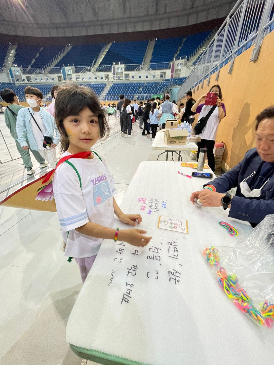 이로운한국어교실 수요일오후반에 참여하는 외국인근로자 자녀에게 센터로 9시까지 나오라고 했습니다. 출발전부터 센터가 어린이 특유의 에너지로 가득했습니다. 강릉 아레나에 도착하니, 이미 많은 어린이가 행사장에 가득했습니다.