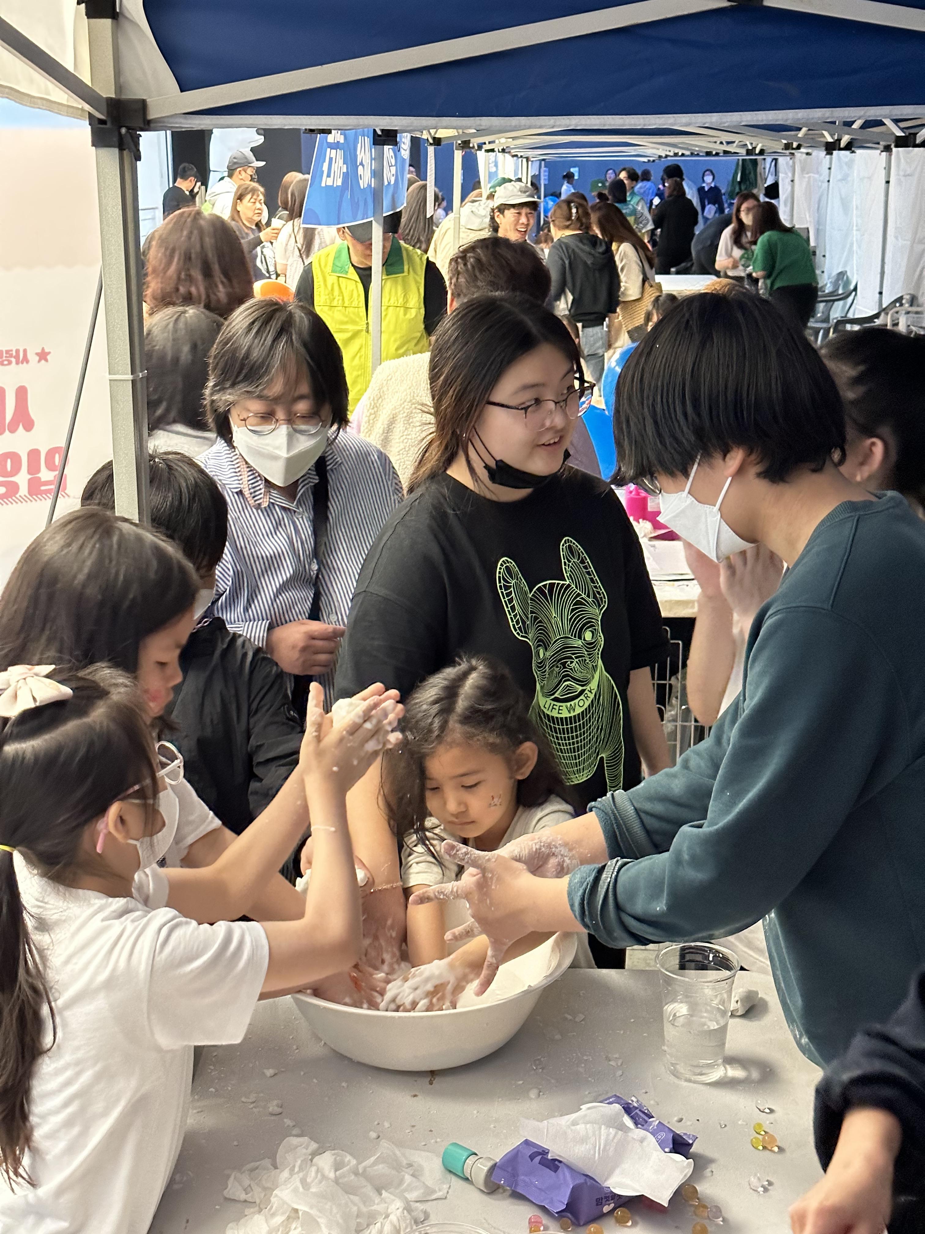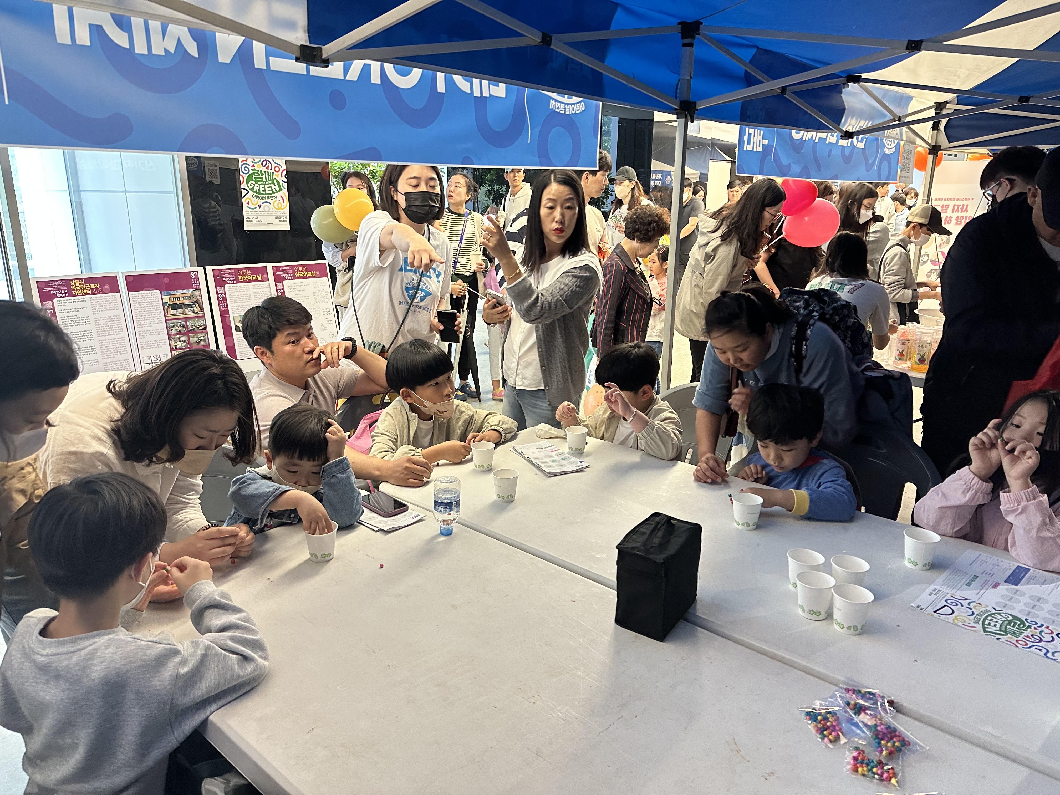 아직 한국어가 서투른 어린이와 자원봉사자가 짝을 이루어 잔치를 즐겼습니다. 다들 관심사가 달라서인지 여러 곳에서 각자 재미있게 잔치를 즐겼습니다. 어떤 친구는 체험 위주로, 어떤 친구는 관람을, 어떤 친구는 먹거리로 좋은 추억을 만들었습니다.