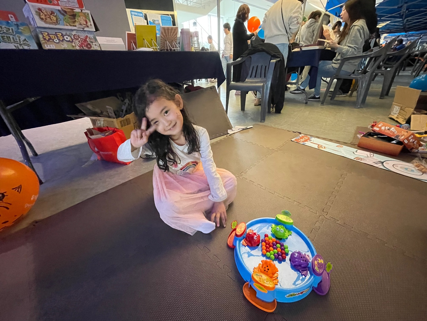 먼저, 부스를 확인하고 어린이 손님을 맞을 준비를 했습니다.