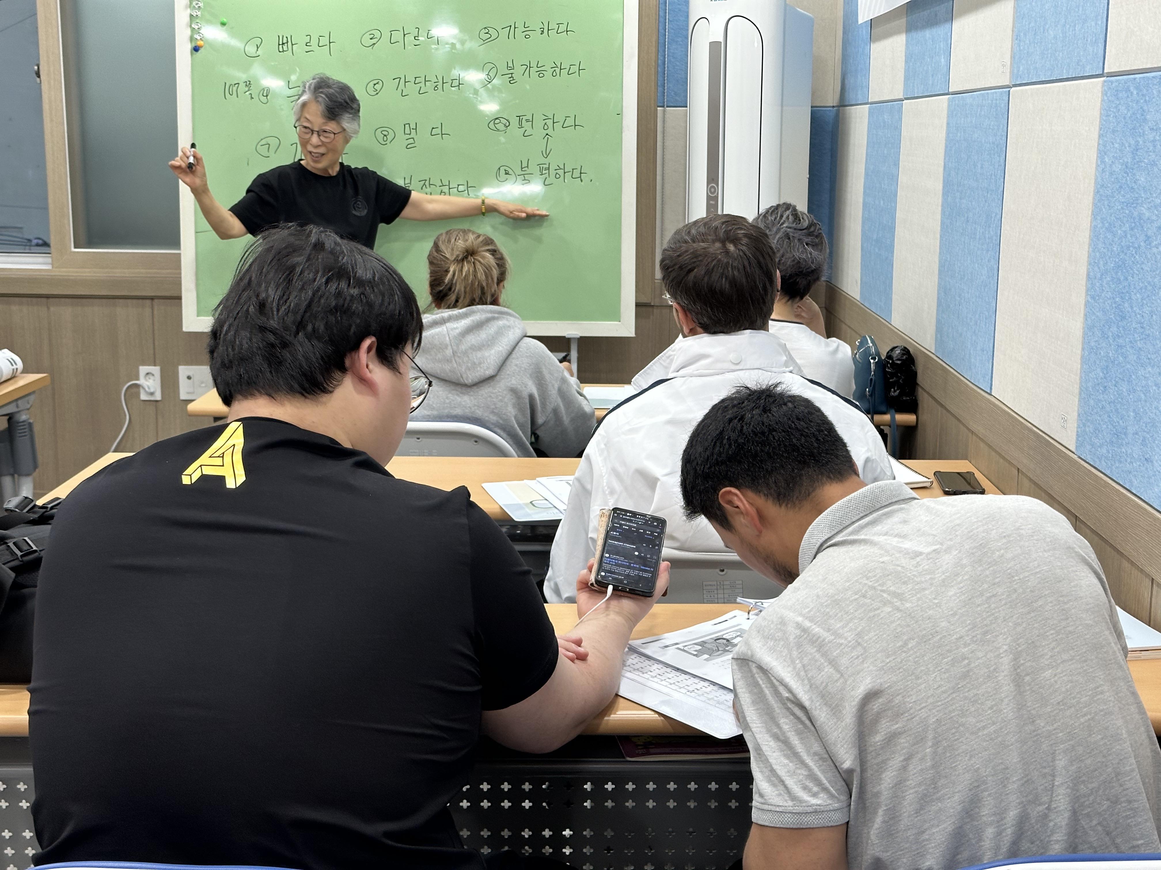 오후 7시부터 시작되는 이 수업은 일을 마치고 온 외국인근로자가 주로 수강을 합니다.