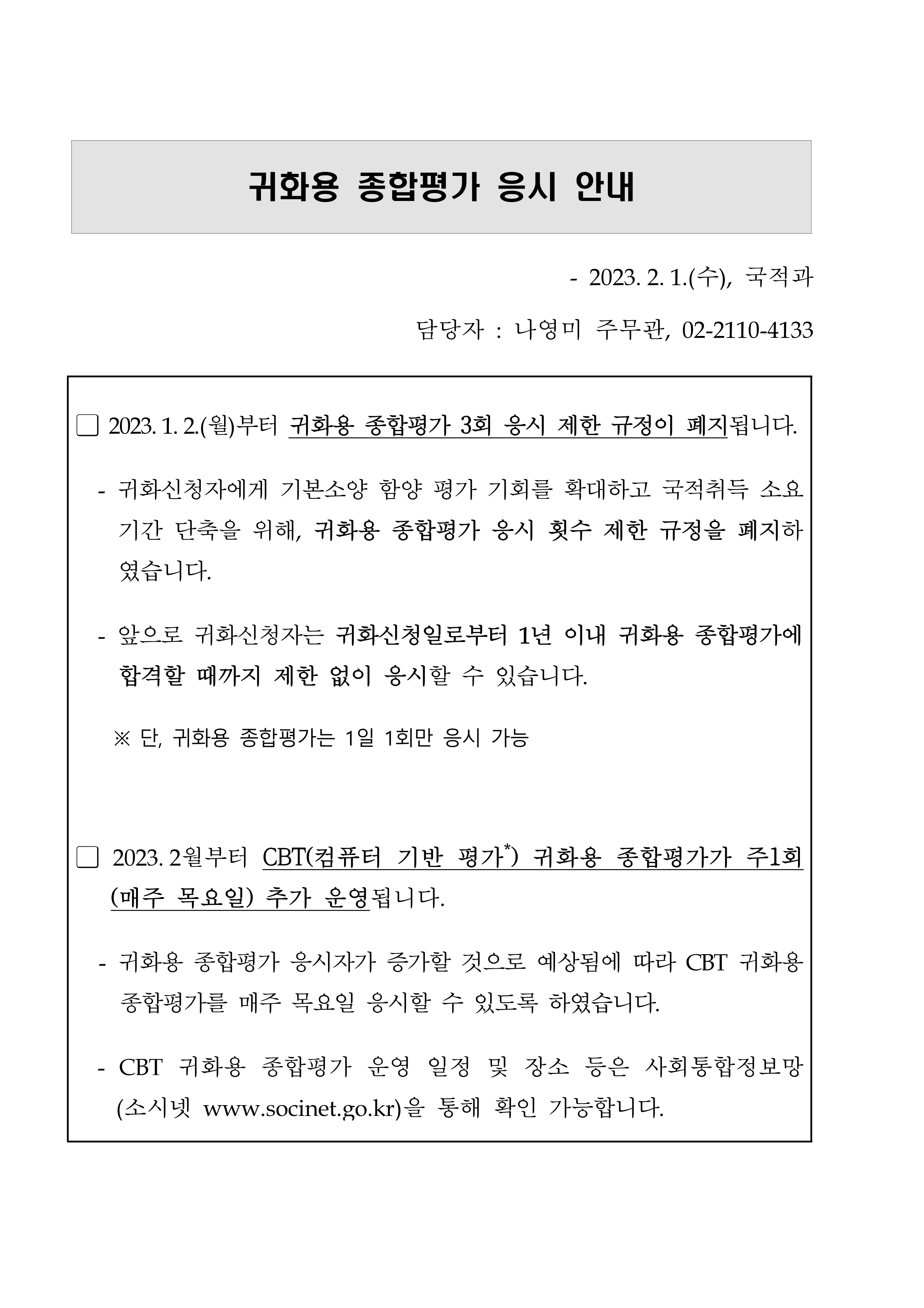| [법무부 출입국/외국인정책본부] 2023년 2월 기준 국적업무 심사기간 알림 (0) | 2023.02.22 |