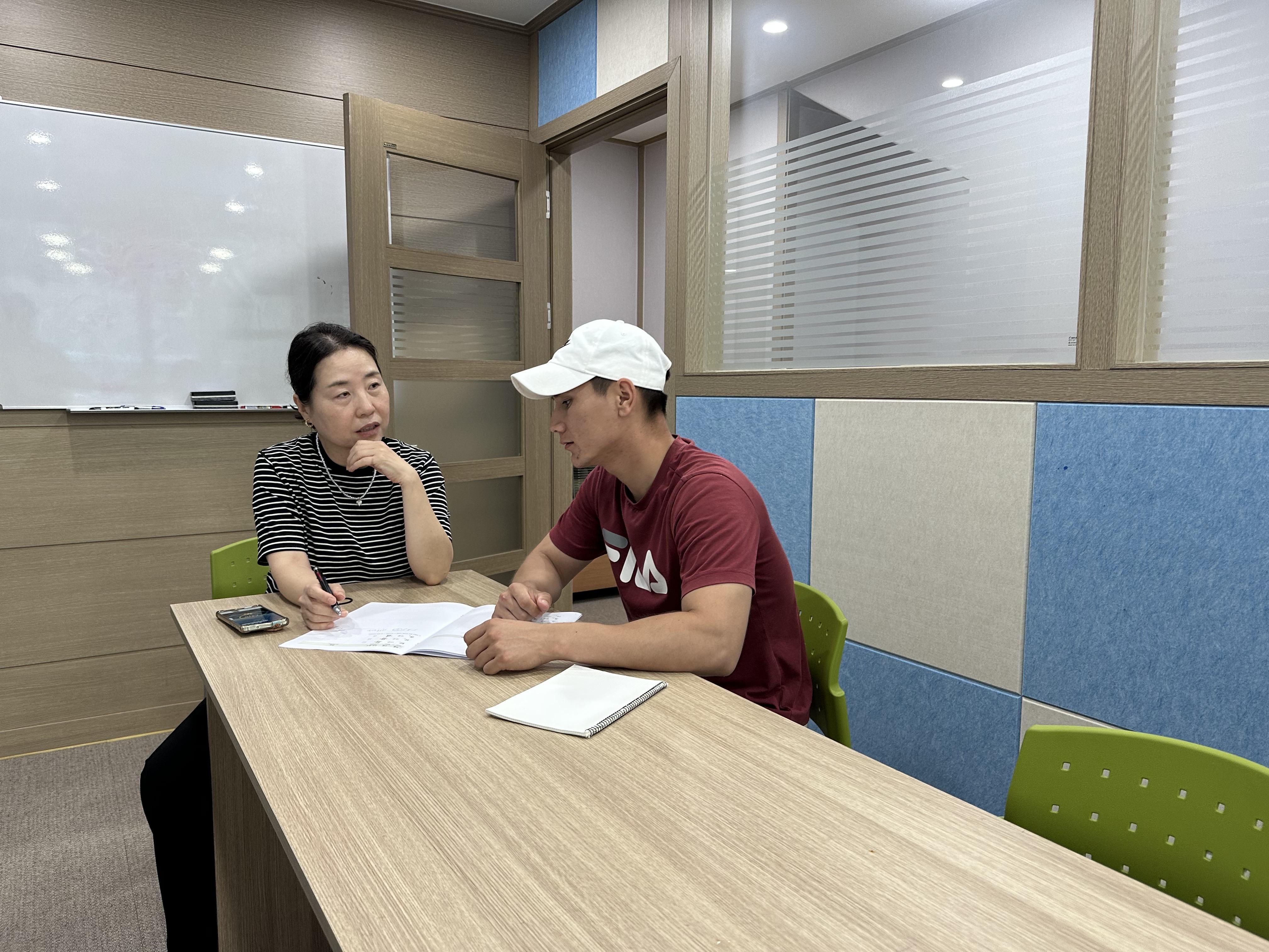 한국어 수준에 맞게 세분의 한국어 자원봉사자가 나누어 수업을 합니다.
