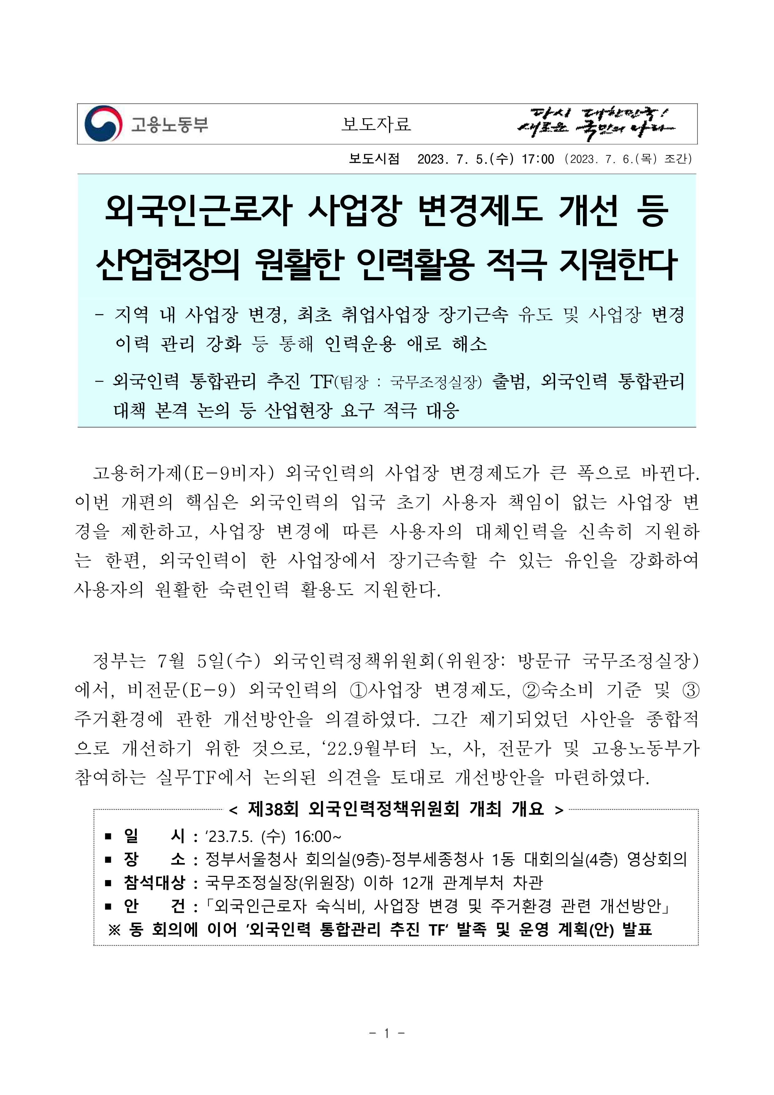 | [법무부] 구인난 해소를 위해 재외동포 취업 범위 확대(2023.05.04 배포) (0) | 2023.05.09 |