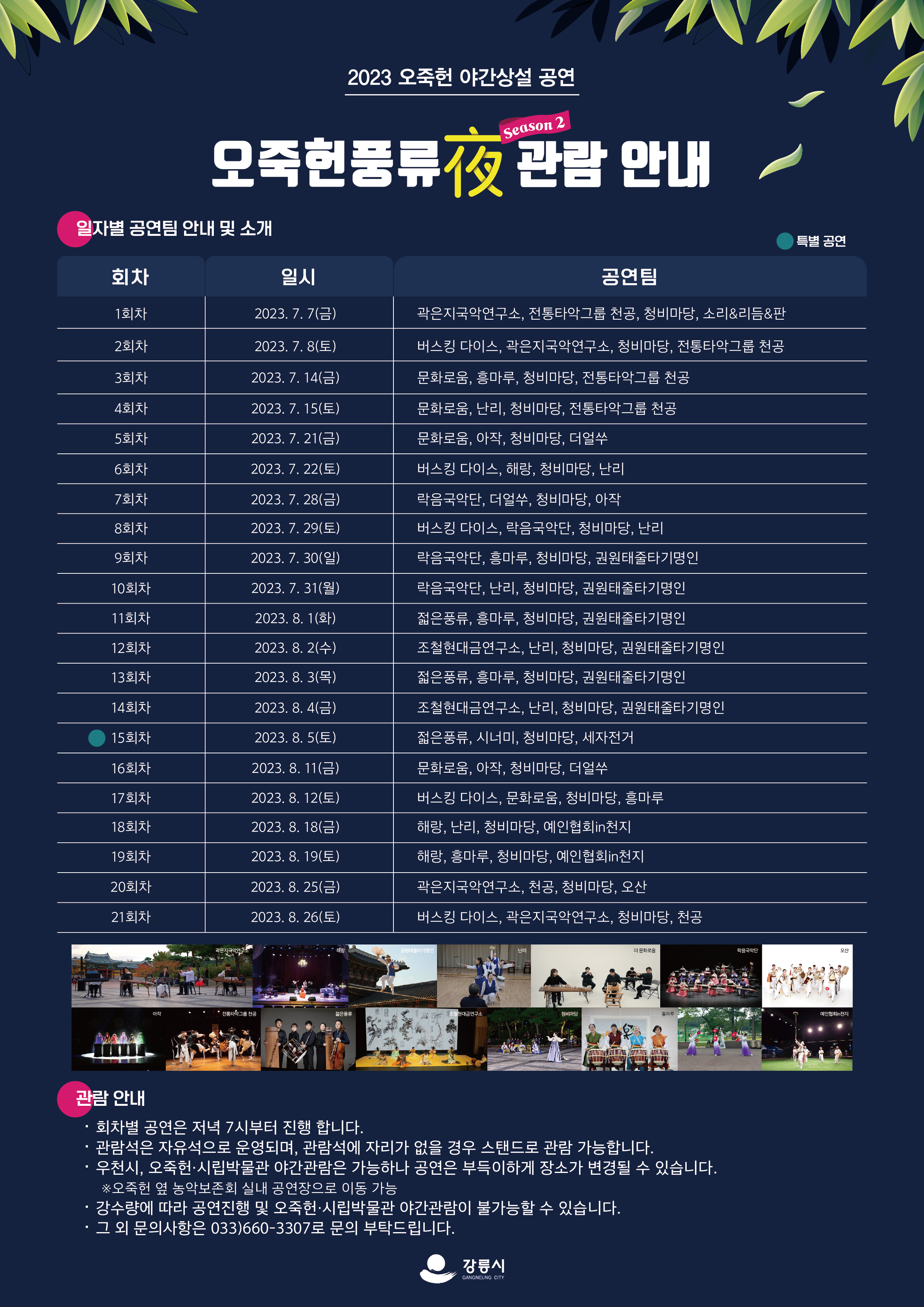 - 프로그램명 : 2023 오죽헌 야간상설 공연 오죽헌풍류 夜 season2