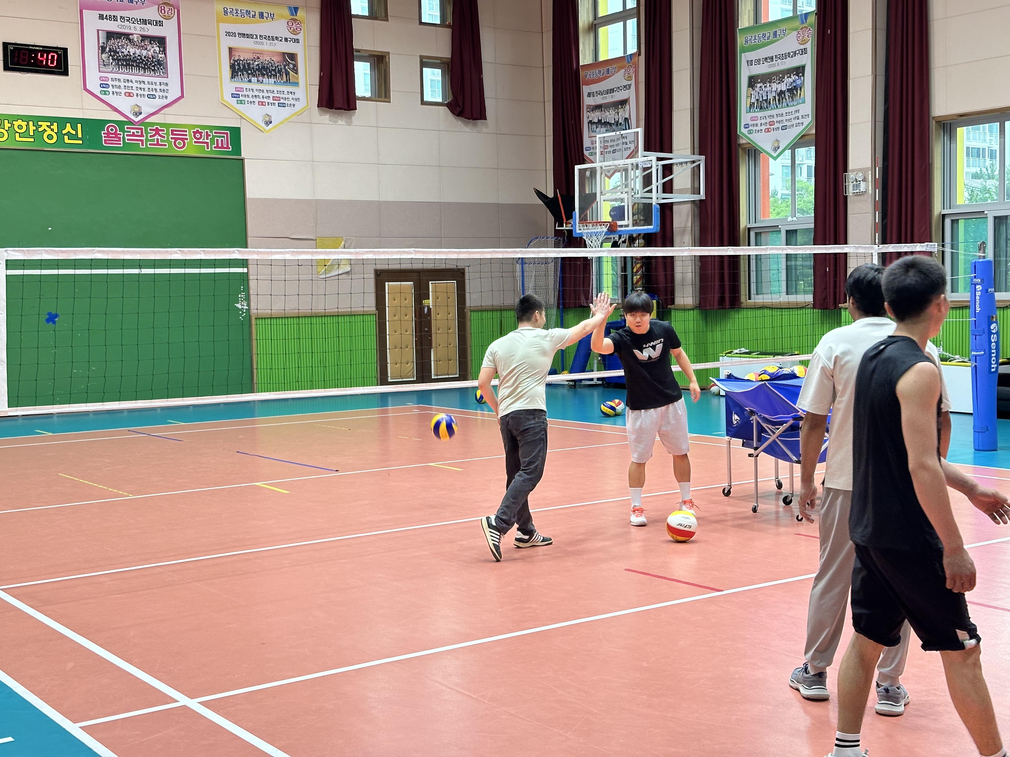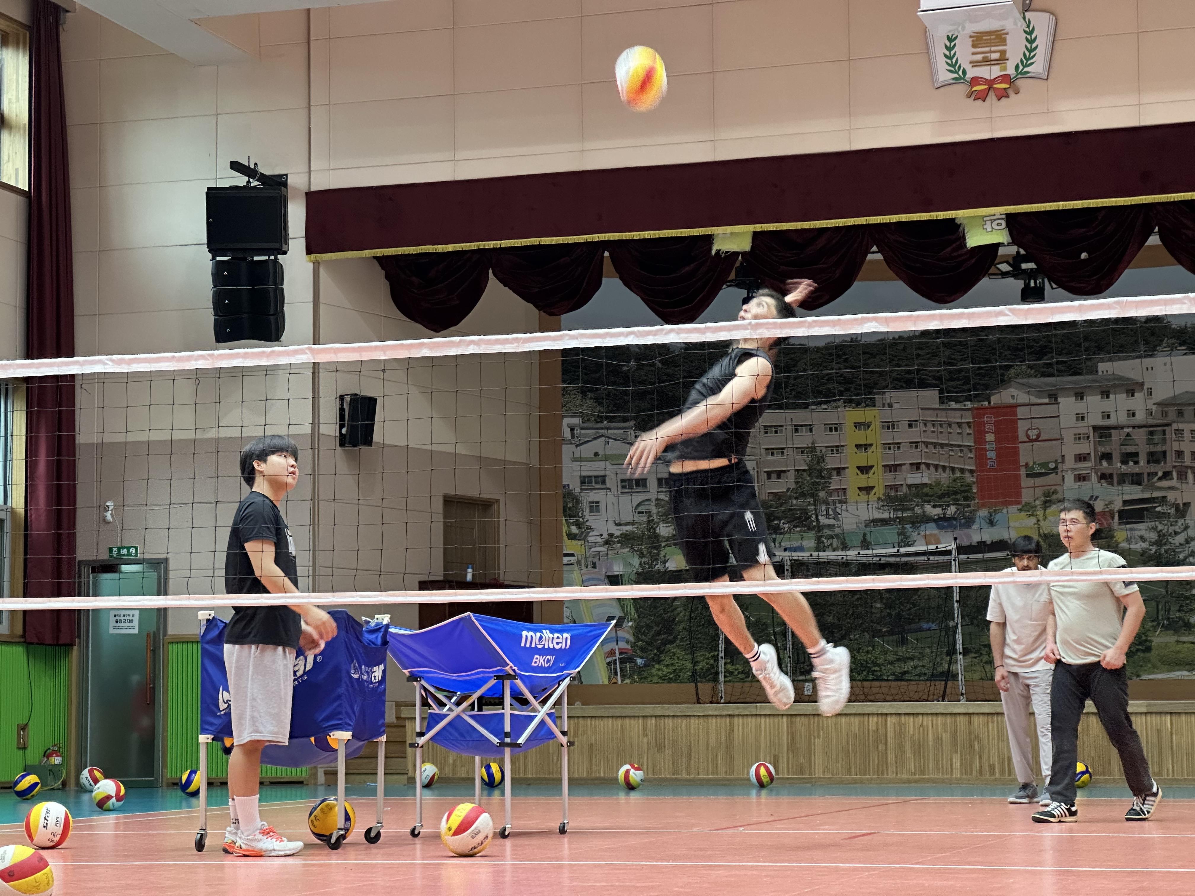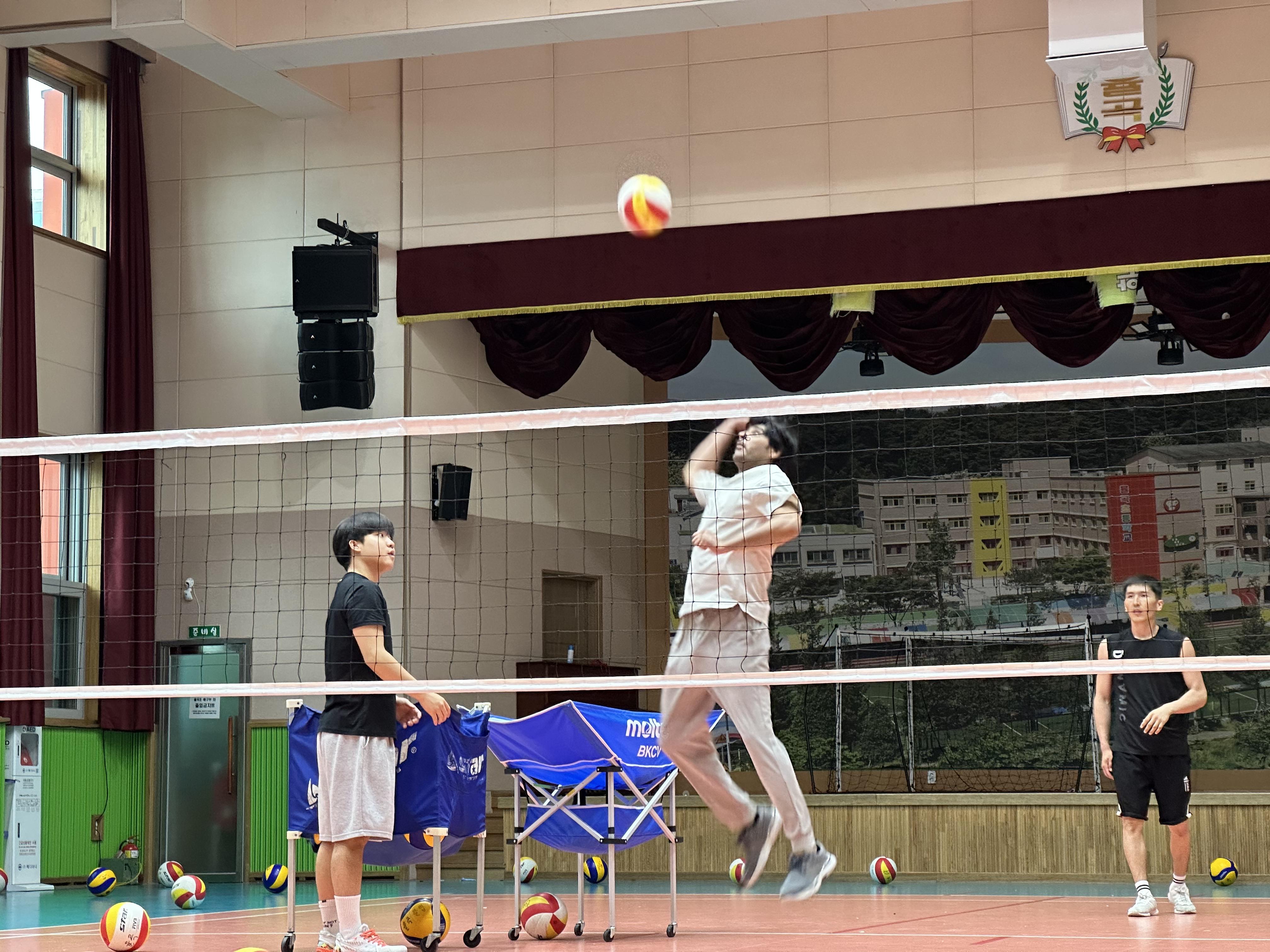 배구를 즐겨하는 키르키스스탄 외국인근로자가 대부분 일요일에도 일을 한다고 합니다. 그렇다고 코치님과 학교에 저녁시간에 하겠다고 할수도 없고~하다보니, 2명만 참석하게되었습니다.