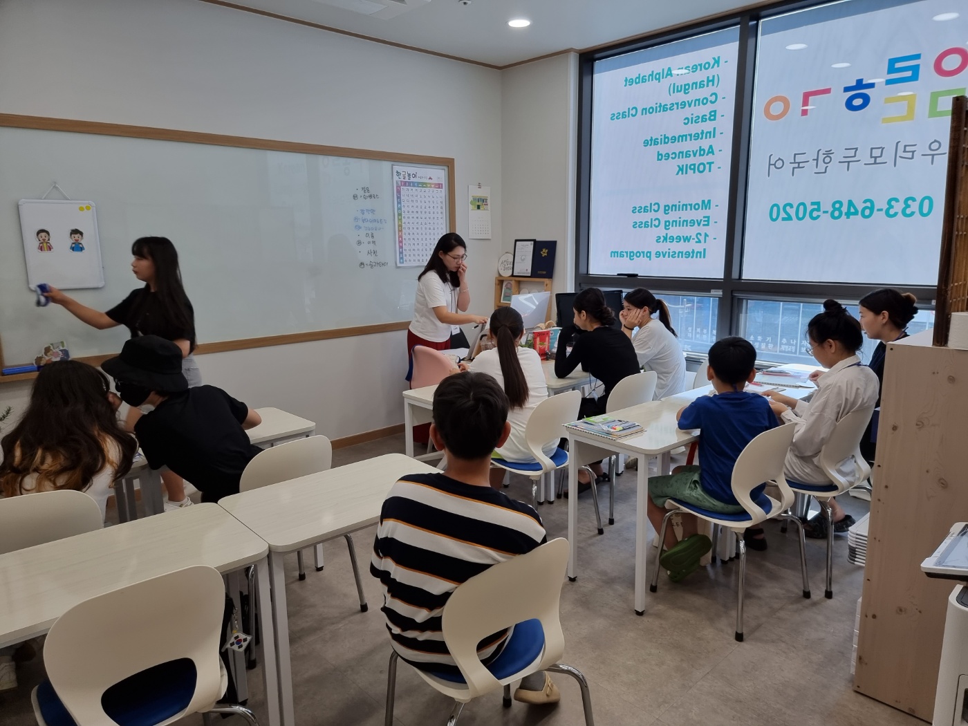 학교에서도 평일 오전 2시간 한국어 공부를 합니다..