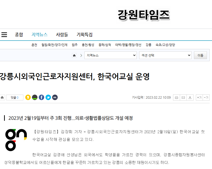 | [연합뉴스] 강릉 외국인 근로자 한국어 교실 인기 (0) | 2023.02.23 |