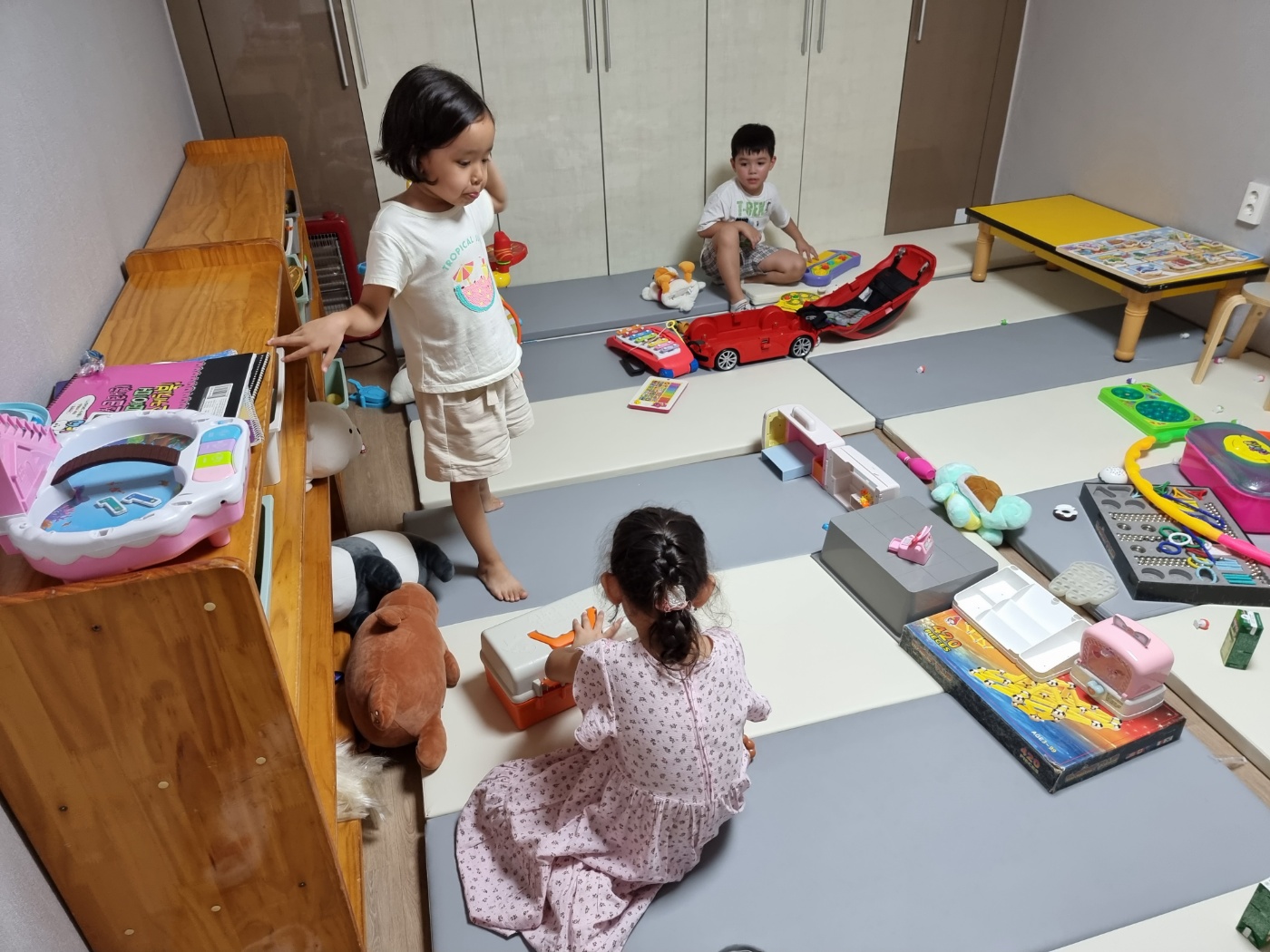 미취학 아동들은 돌봄교실에서 장난감과 동화책을 보며 형들의 수업을 기다립니다.