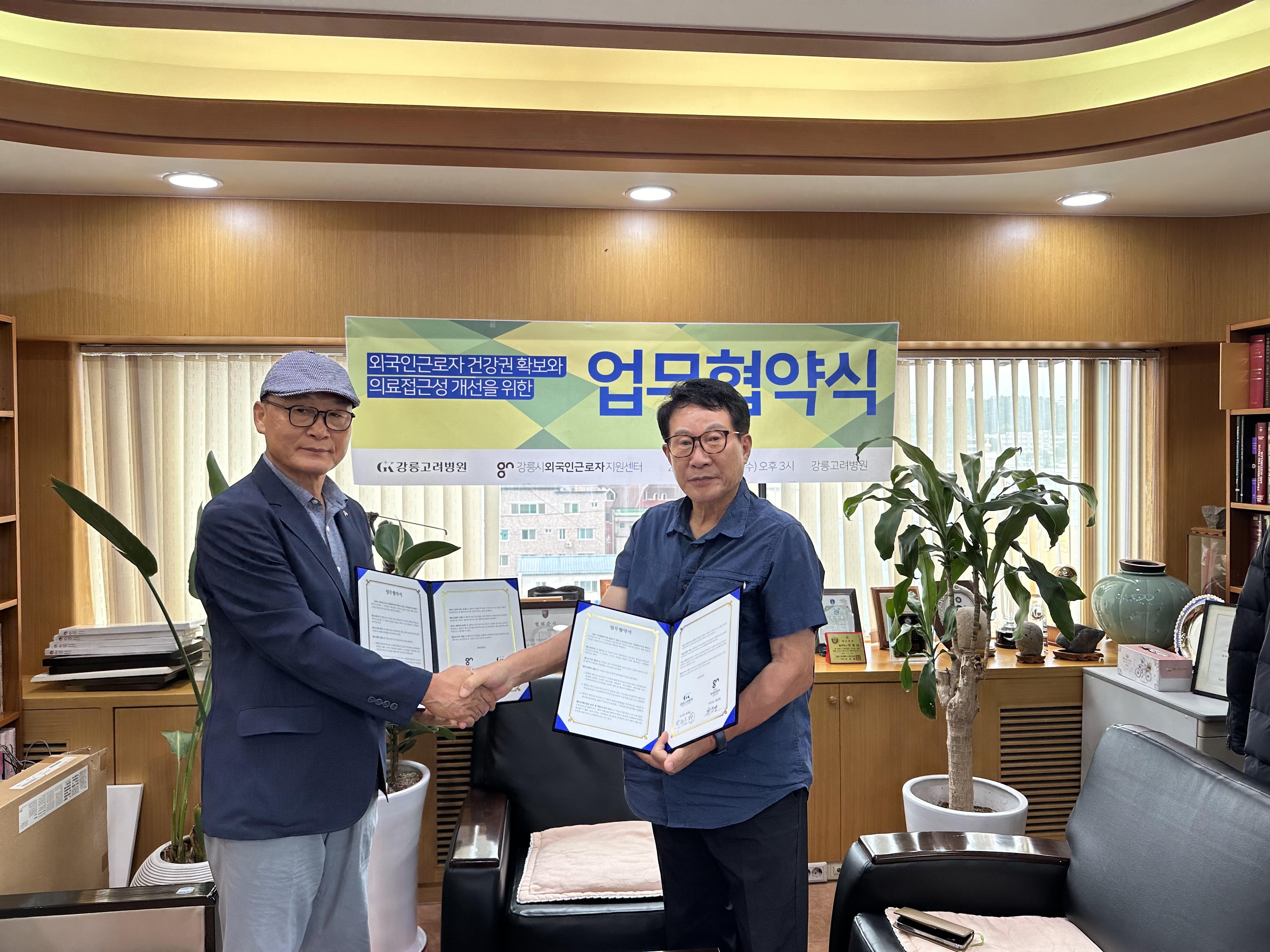 센터는 강릉 고려병원과 외국인근로자 건강권 확보 및 의료접근성 개선을 위한 업무협약을 체결하였습니다.