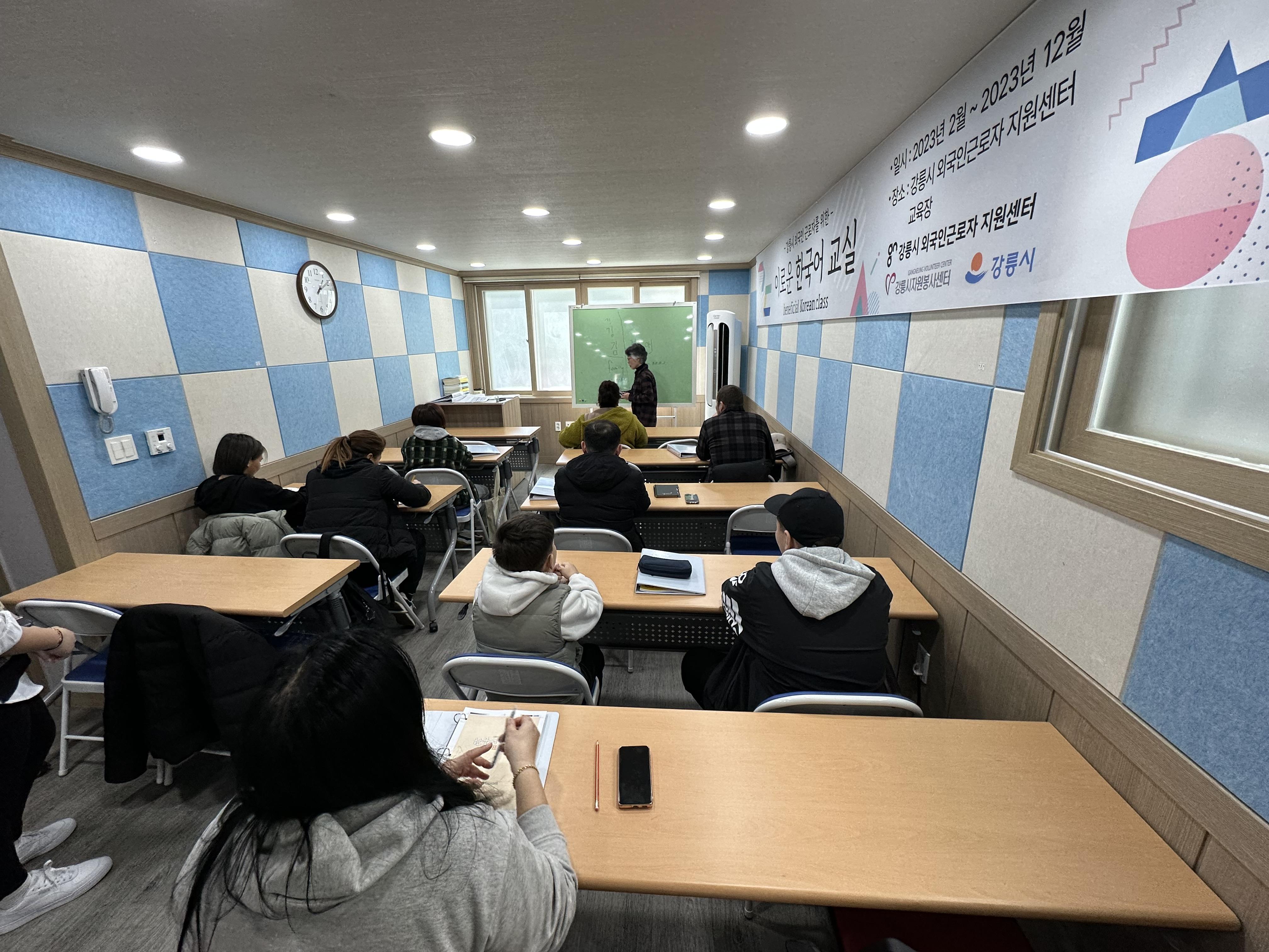 강릉시 외국인근로자 지원센터는 이로운 한국어 교실 일요일 오후 반을 개강했습니다.