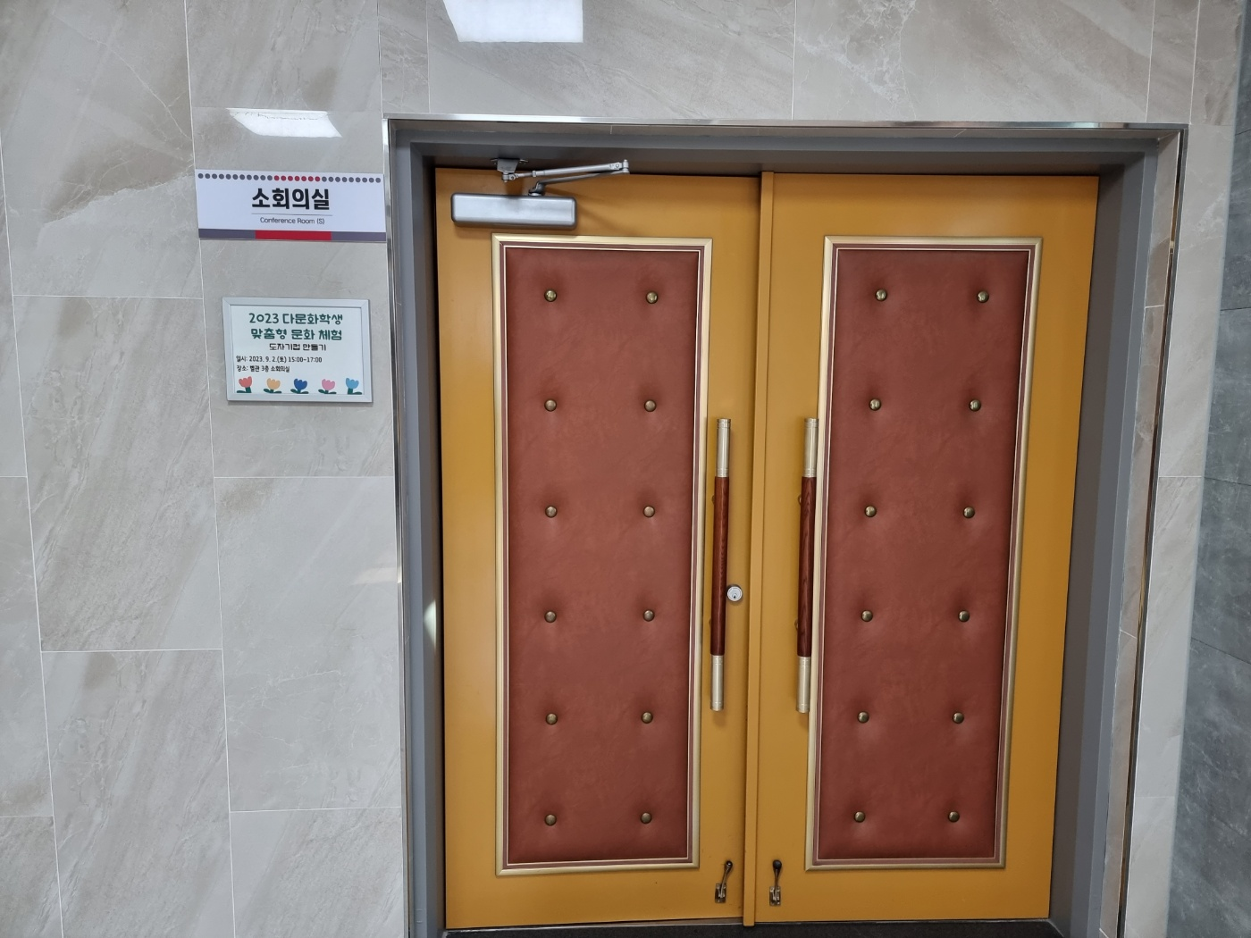 체험 도중에 강릉교육지원청 사무실 복도에 전시된 외국청소년들이 그린 그림도 담아 보았습니다.