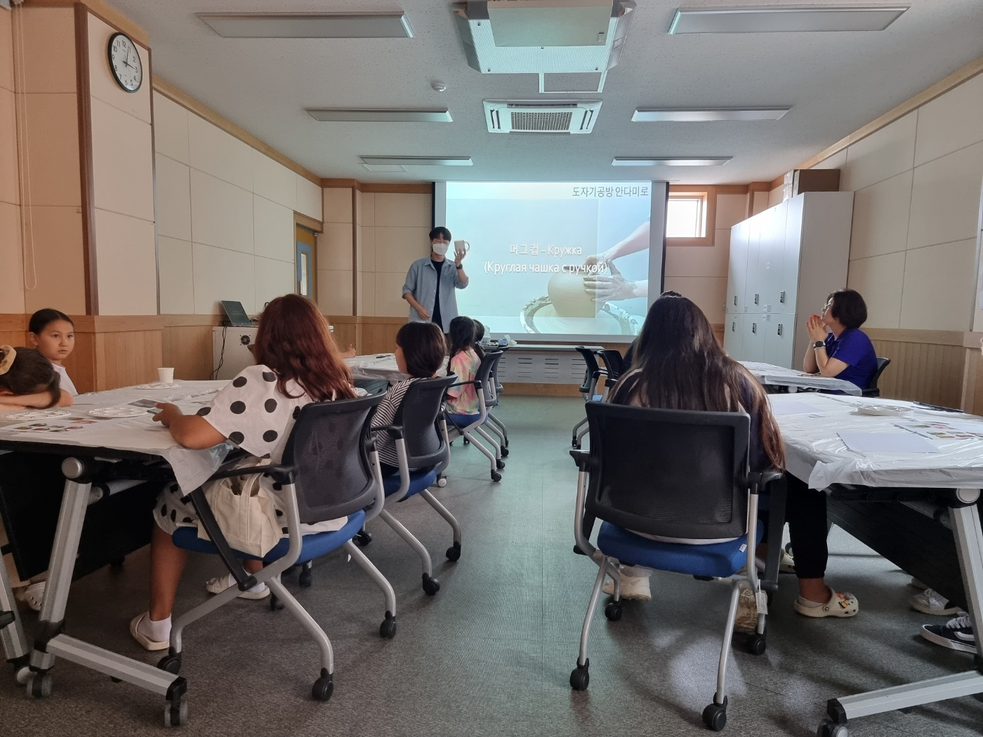 컵과 접시 도자기 만들기를 진행해 주시는 강사님이 PPT 를 러시아어로도 만들어 오셔서 설명해 주셨습니다.