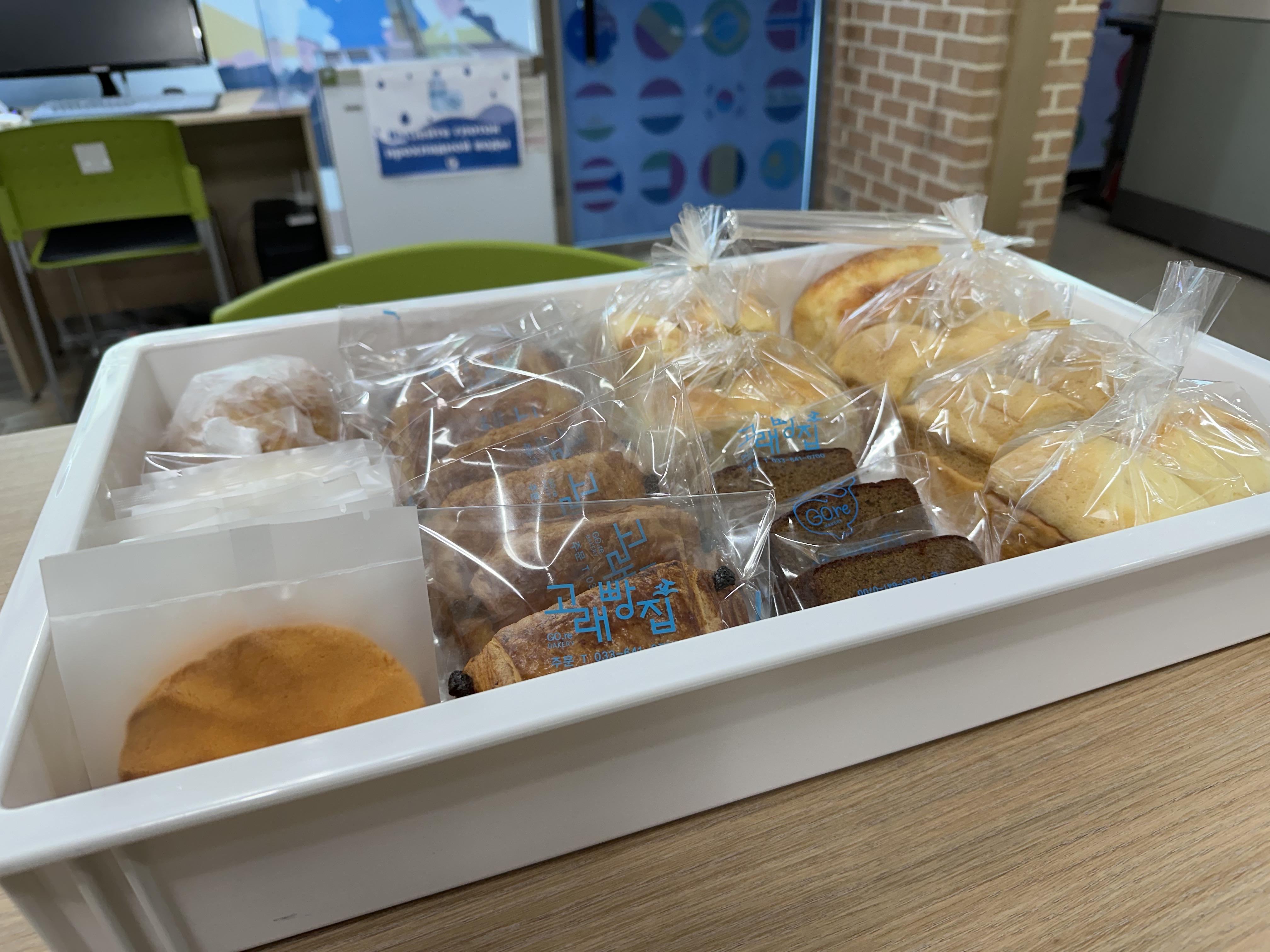 고래책방[고래빵집]에서 센터를 방문하는 외국인근로자에게 전달해 달라면서 빵을 나눔해 주셨습니다.